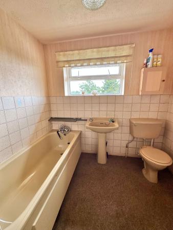 BATHROOM Fitted with a coloured three-piece suite comprising bath with shower attachment, pedestal wash and basin and close WC. Tiled walls. Double glazed window with an open outlook. Radiator.