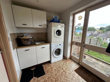 UTILITY ROOM - 3.7m x 1.8m (12'1" x 5'10") A large and useful utility room having plumbing for washing machine and space for tumble dryer. Stainless steel sink unit with cupboards below and wall cabinets above. Radiator. Glazed door and window leading to the rear garden.
