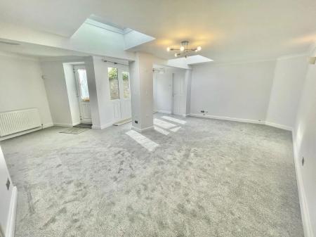 LOUNGE/DINER 22'9" (7m) X 22'9" (7m) An irregular shaped room. Double glazed picture window to the front. Patio door leading onto the front courtyard. Two skylights. Two radiators. T.V. point. Door giving access to the guest suite and ensuite shower room, and to the other side of the lounge there is a door leading to:-