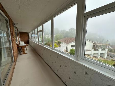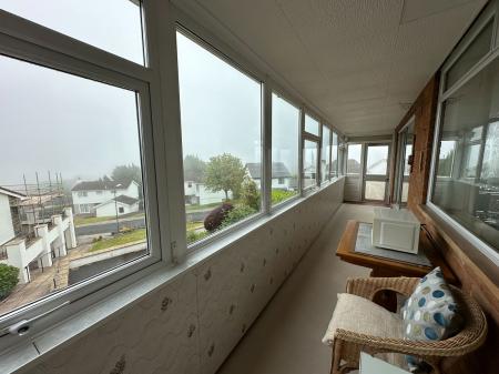 SUN ROOM - 12m x 1.3m (39'4" x 4'3") A long sun room running the full width of the property with double glazed windows and power and lighting. From here the sea views are enjoyable across Wellswood and out to sea to Sidmouth and Exmouth. A great place to sit, relax and enjoy the views. Security roller shutter to outside.