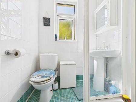 SHOWER ROOM Window to side aspect, Shower, Wash hand basin and WC.