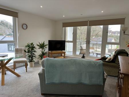 LOUNGE DINER - 5.1m x 3.7m (16'8" x 12'1") A bright and spacious lounge/diner having French doors leading out to the sun balcony. There is space for a dining suite, still leaving a generous lounge area. A glass door leads from the lounge to:-