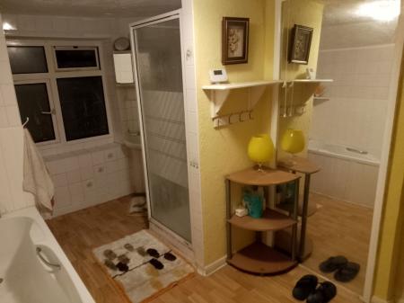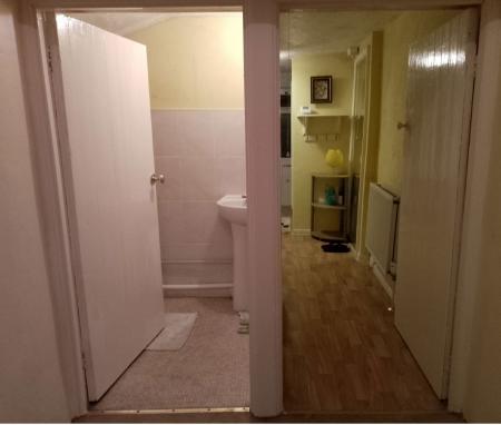 BATHROOM Bath, shower, low level WC, hand wash basin.