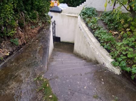 OUTSIDE Garden to front, private courtyard/garden area. Storage shed - 3.17x5.75.