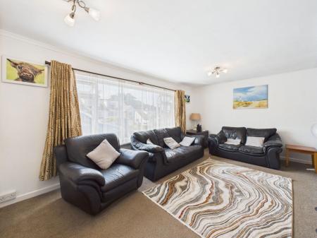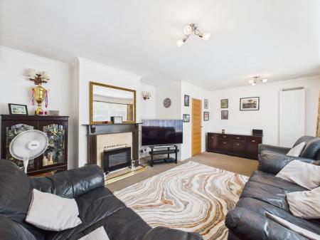 LOUNGE - 5.71m x 4.16m (18'8" x 13'7") A spacious light airy lounge with large uPVC window looking out to the front of the property. Fireplace with inset electric fire and wall mounted radiator.