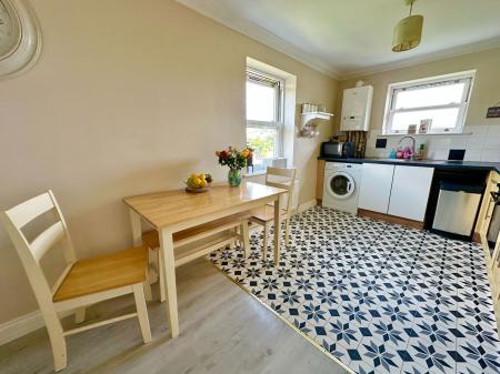LOUNGE/KITCHEN/DINER - 8.2m x 2.8m (26'10" x 9'2") max A welcoming room with the lounge area comfortably accommodating a 3 piece suite. There are double glazed windows that afford an open outlook across the locality taking in many of the beautiful period villas that make up the area along with St Mathews Church. TV point. Two wall light points. Radiator. The kitchen area is well appointed with a range of matching wall and base units with work surface over. Fitted gas hob with oven/grill below and cooker hood over. Plumbing for washing machine. Space for fridge/freezer. Ideal gas boiler. Double aspect double glazed windows one of which has an open outlook to the locality the other having expansive views across Torquay with Babbacombe and St Marychurch to the horizon. The is space enough for a 4 seater table and chairs.