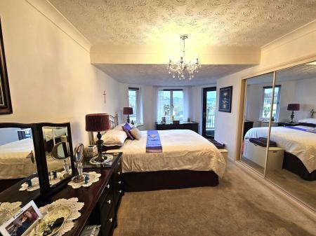 BEDROOM 2 Double glazed patio doors to balcony enjoying a superb open outlook and sea views across to Torquay harbour. Fitted wardrobe with mirrored sliding doors.