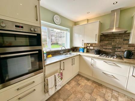 A well fitted kitchen equipped with a modern range of cream wall and base units with work surfaces over. There is a range of Lamona built in appliances, including a stainless steel gas hob and double oven and grill, stainless steel cooker hood, stainless steel sink unit with mixer tap over. Space for a fridge freezer. Double glazed window to rear garden. Spot lights to ceiling and under pelmet lighting. Ideal gas boiler. Door leading to: