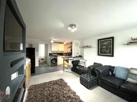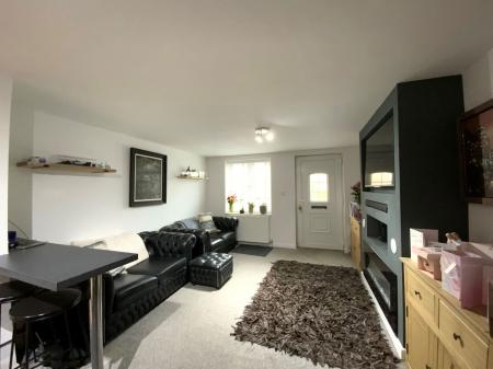 LOUNGE: 5.745 x 3.704 max 3.906 UPVC door to front entrance. Double glazed window to front aspect. Modern, well presented Lounge with carpeted flooring. Fitted modern electric fire with inset space for sound bars and TV. Built in speakers. Consumer unit. Rad. Opening to :-