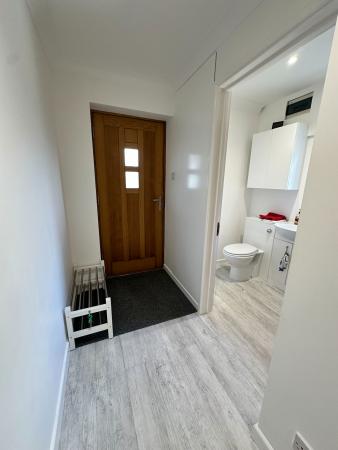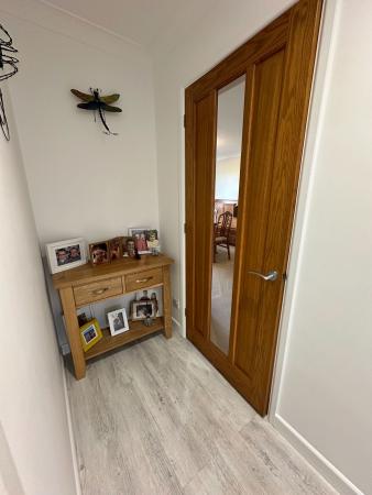 HALLWAY - 4.98m x 0.97m (16'4" x 3'2") Contemporary solid wood effect front door. Space for casual table, coats etc.