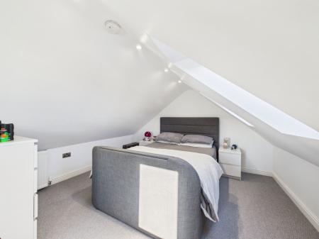 A delightful double bedroom with two Velux windows and window to the side, radiator.