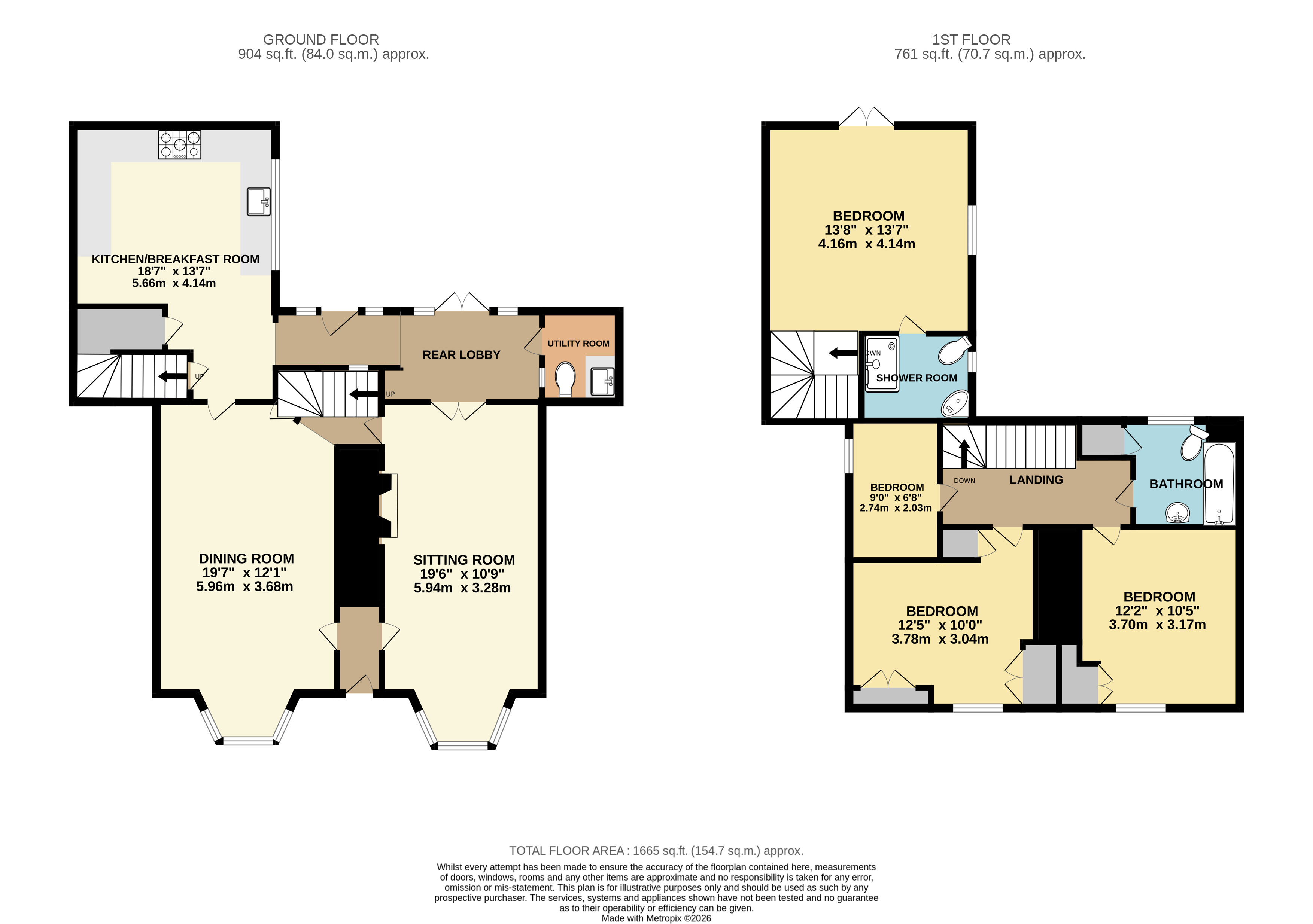 Bedroom 12'5"x10' (3.78mx3.05m).