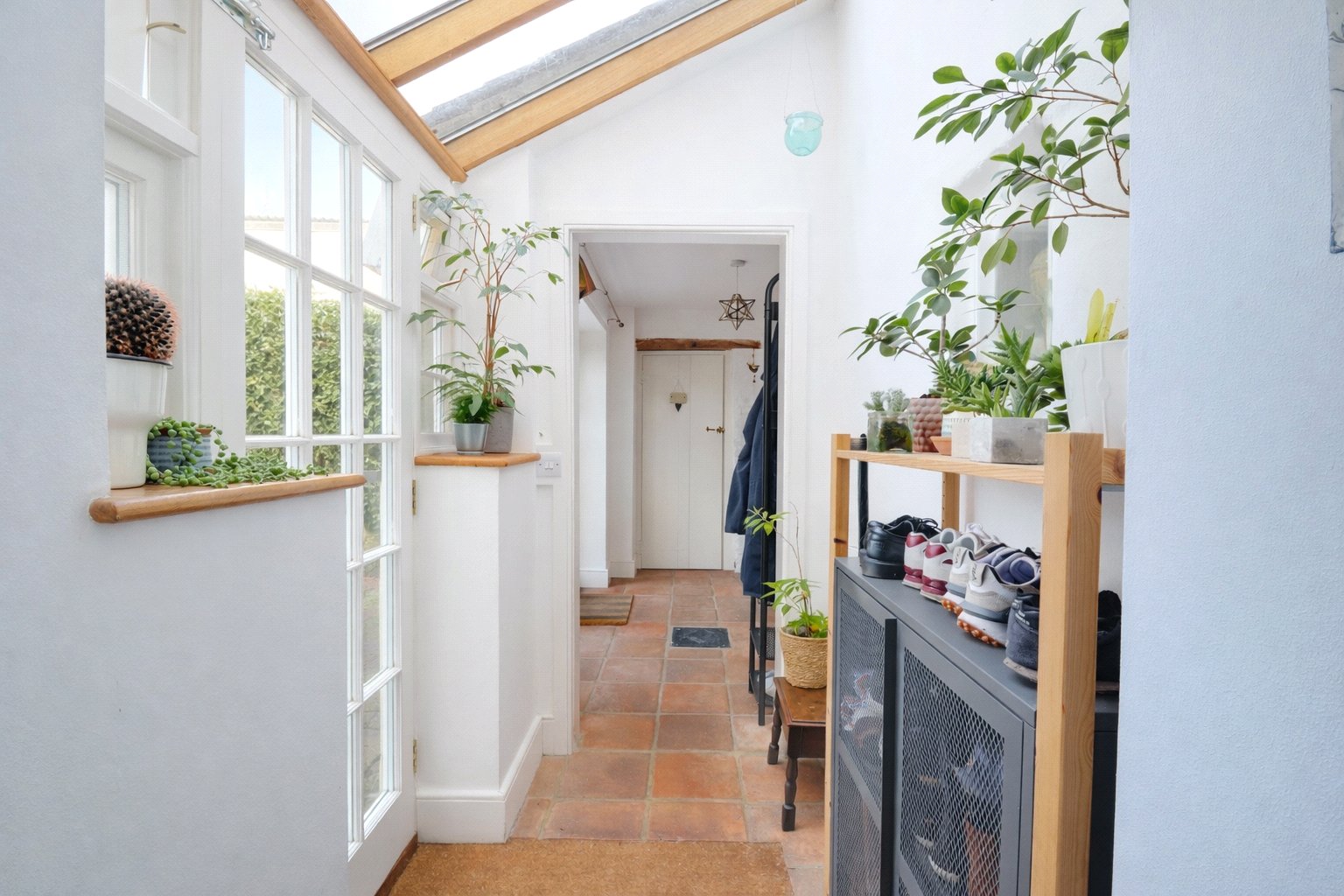 To the rear of the property, the kitchen/breakfast room extension provides a spacious area fitted with a range of base and wall units, incorporating a butler sink and range cooker. There is also a useful understairs storage cupboard. Leading from the kitchen is an inner hallway and sunroom which provides access to the utility room, offering space and plumbing for a washing machine and tumble dryer, along with a WC and wash hand basin.