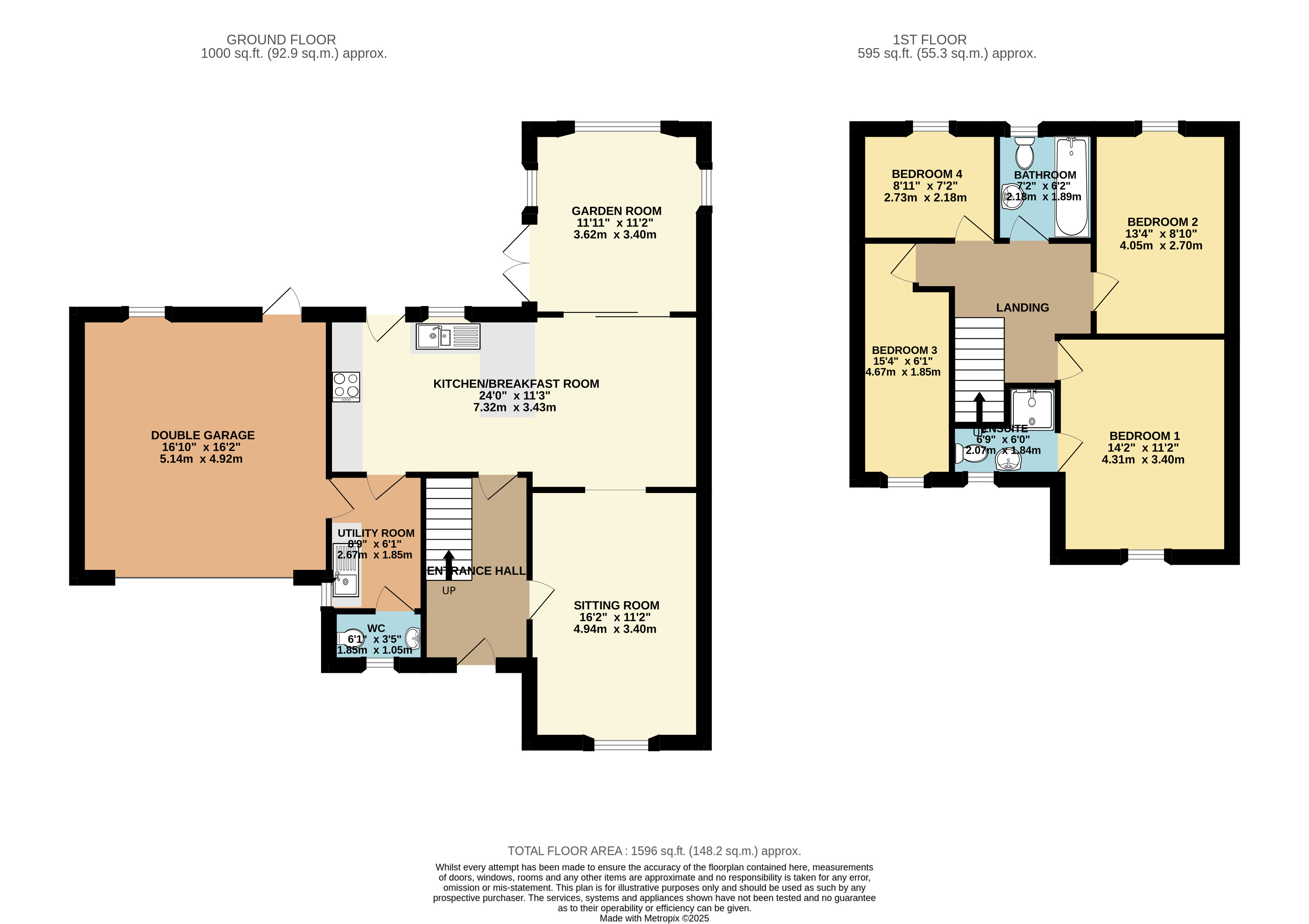 Integral Double Garage 16'2"x16'10" (4.93mx5.13m).