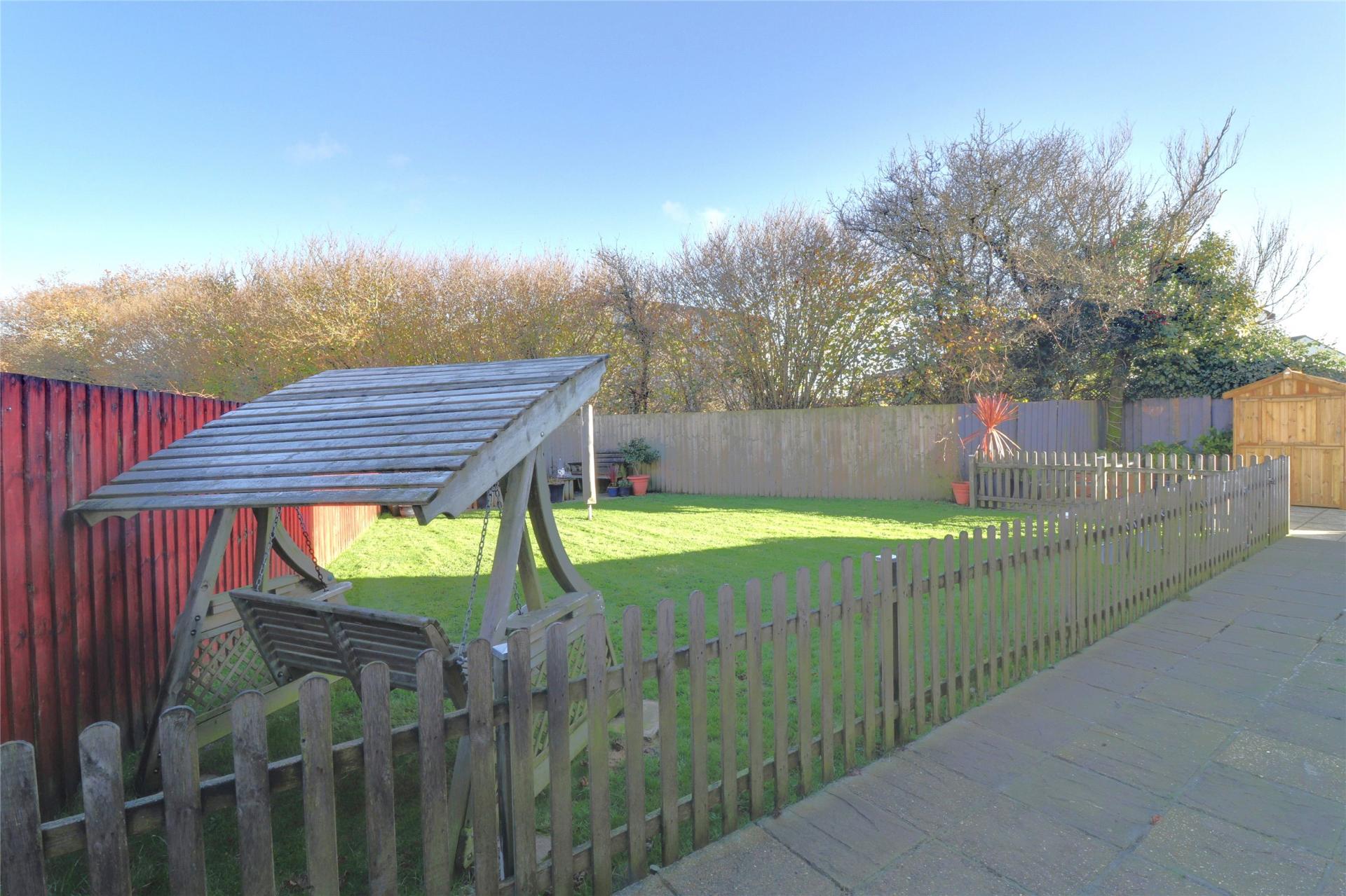 The rear garden provides an excellent outdoor space for relaxation and entertaining, with a paved patio path that leads around to the side of the property where further storage and the oil tank can be found. A gated side access returns to the front. The main patio offers a generous spot for outdoor dining and there is also a useful storage shed. The garden itself is mainly laid to lawn with a neat fenced boundary, and at the far end is a charming pond which houses several fish and creates a peaceful seating area.