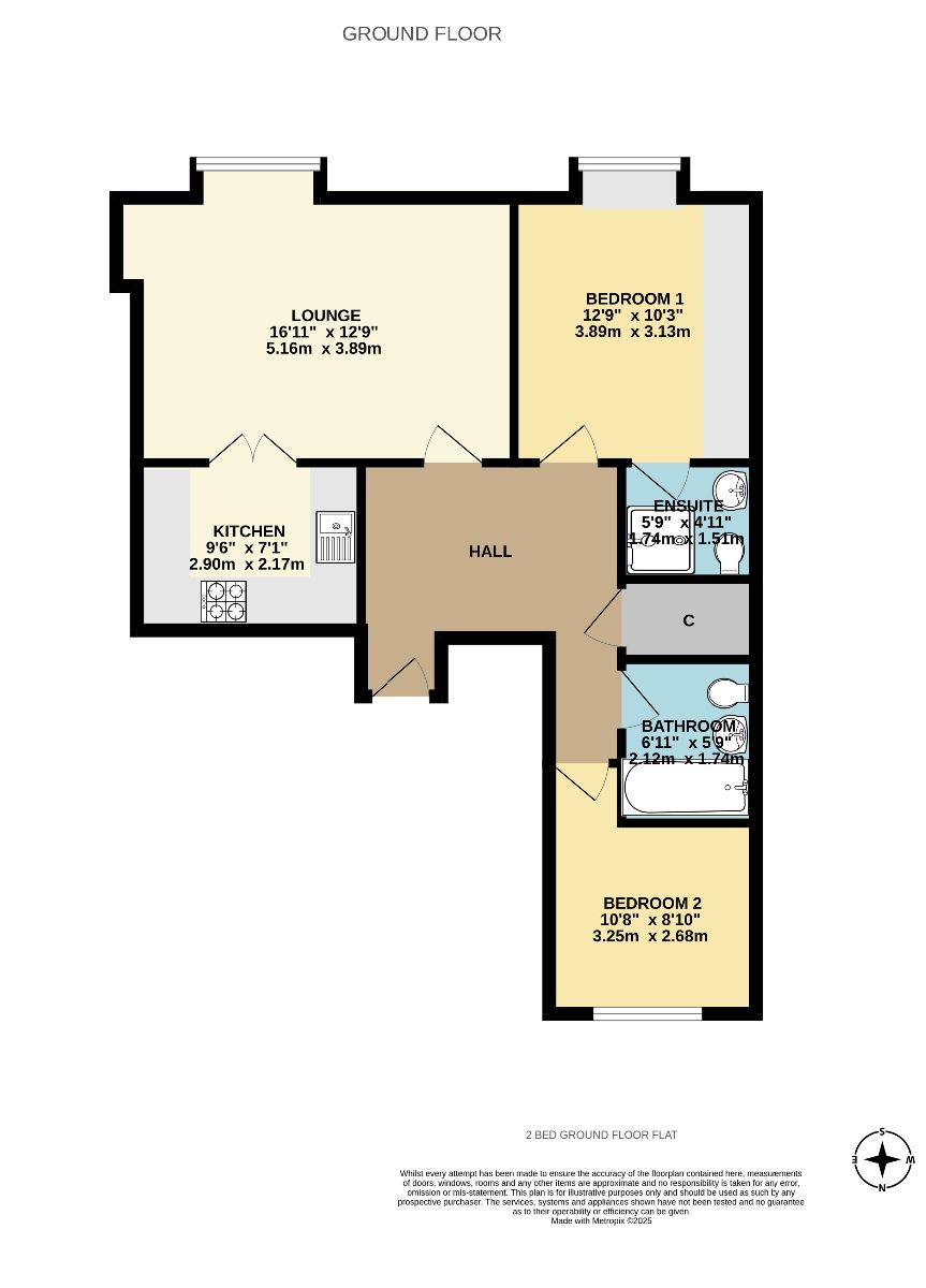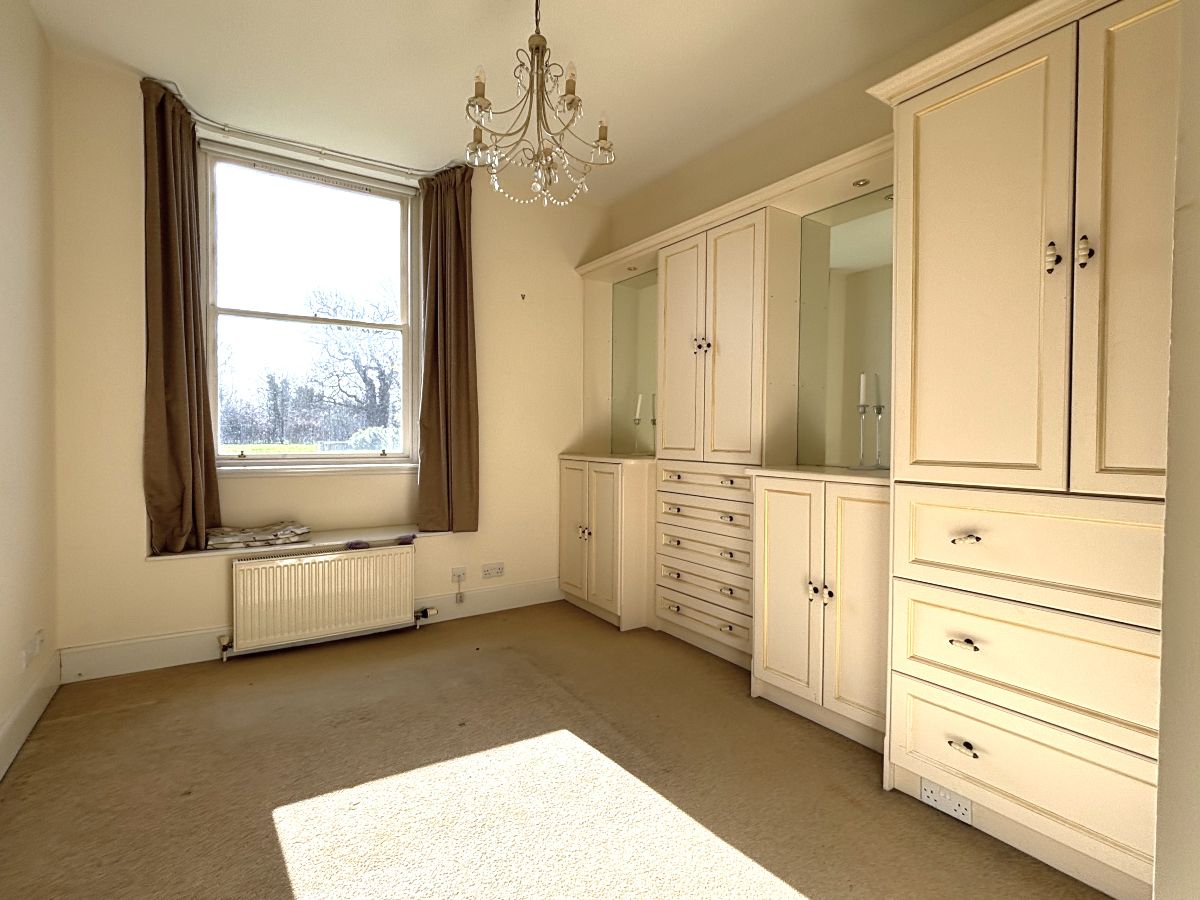 The interior comprises a welcoming hallway with storage cupboard. South facing lounge with ample space for lounge and dining furniture and outlook to the lovely gardens. Double doors open to a fitted kitchen with appliances (fridge, freezer, dishwasher, washing machine, oven and gas hob). The master bedroom boasts a suite of fitted wardrobes and is also south facing with window seat to enjoy the views. An ensuite shower room is accessed of this primary bedroom. The second bedroom is situated to rear of flat. A well-appointed main bathroom completes the accommodation.