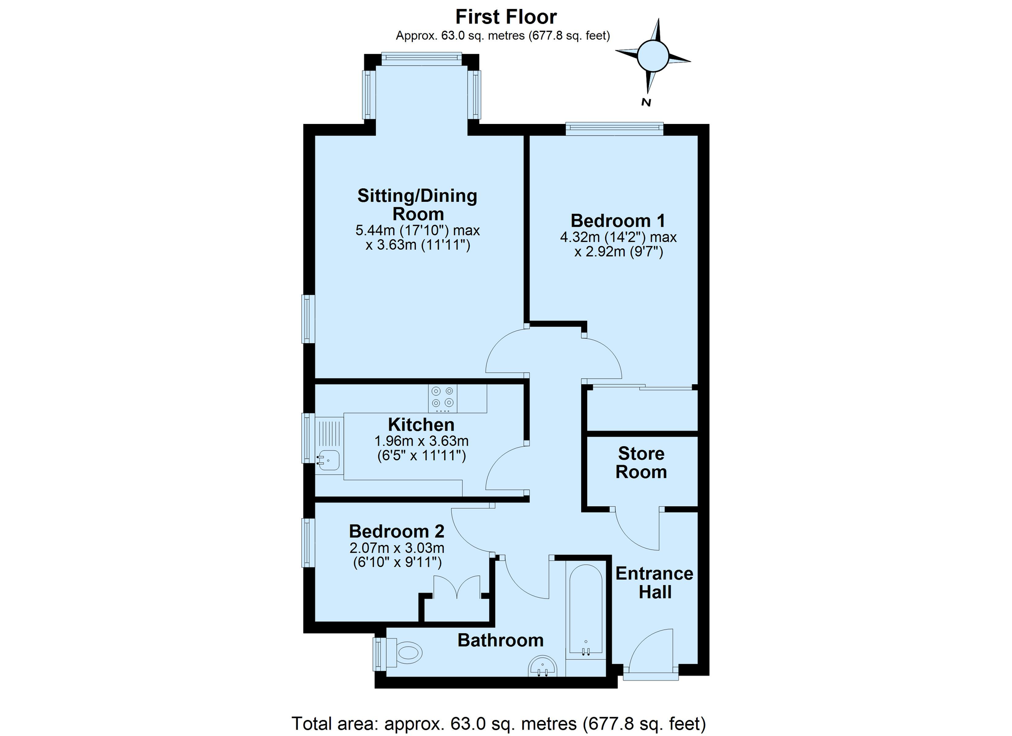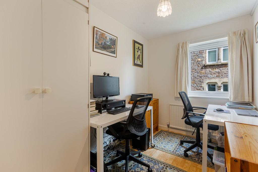 The accommodation comprises entrance hall giving access to the kitchen which is fitted with modern wall and base units, integrated oven and hob and space for all other appliances. The large sitting/dining room is flooded with natural light having a bay window which has a cosy window seat. There are two double bedrooms, one with built-in wardrobes, a good sized store room and the family bathroom completes the accommodation.