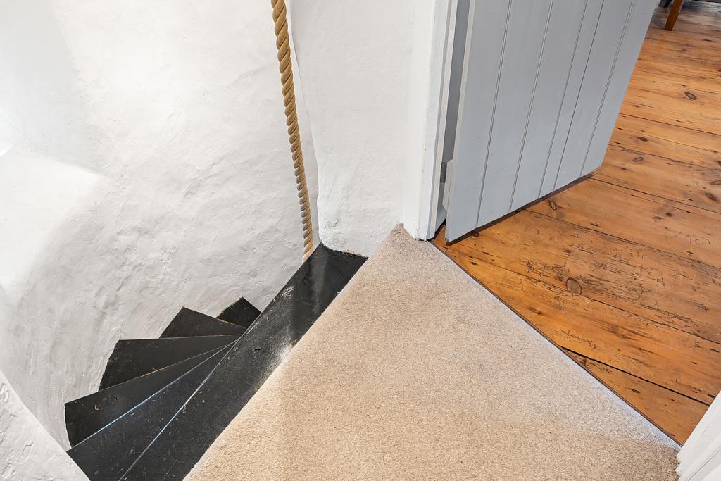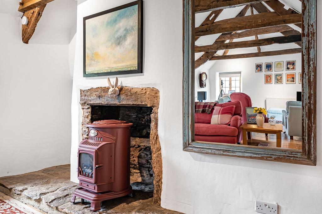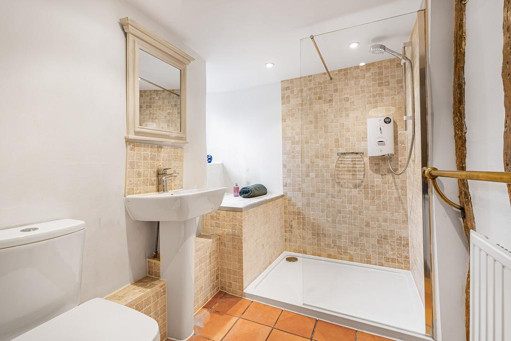 The ground floor accommodation consists of a fitted kitchen with a lovely dining room with inglenook fireplace and two bedrooms and a shower room. Upstairs is a further double bedroom with an ensuite shower room and the living room.