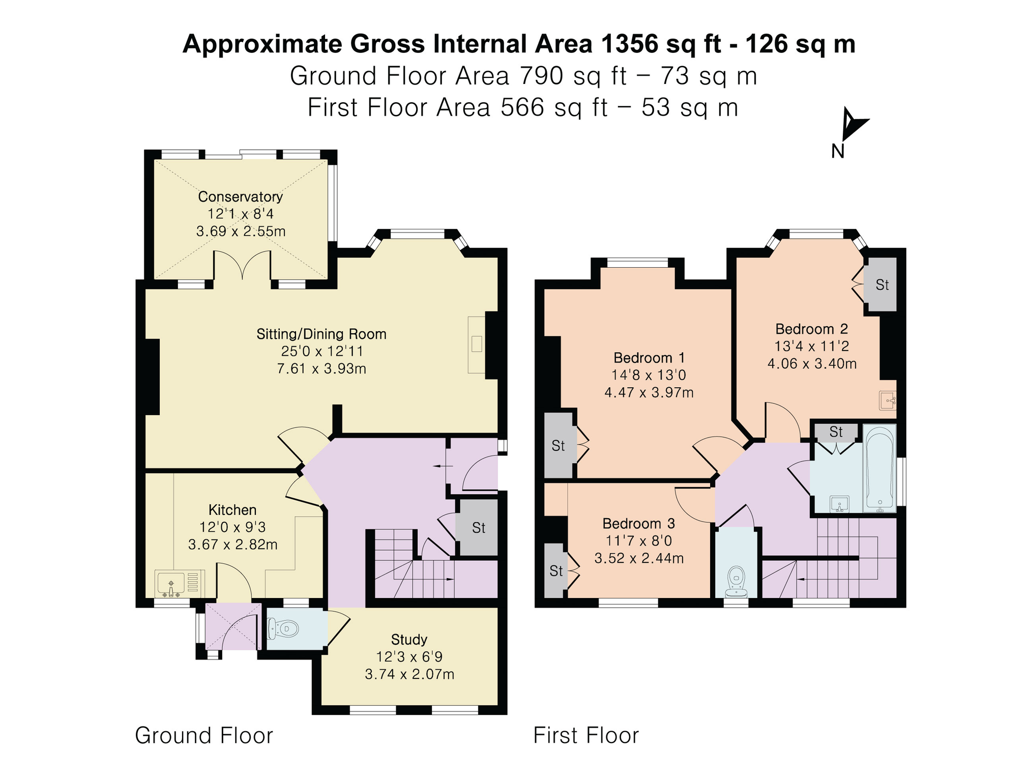 The accommodation comprises side entrance porchway opening to the entrance hall, where there is an opening to a useful study and cloakroom. There is a large open plan sitting/dining room leading through to the conservatory and out to the front garden. To the rear of the ground floor is the kitchen which gives access to the rear garden and driveway parking. To the first floor are three good-sized bedrooms, all with storage cupboards. A family bathroom and separate WC complete the accommodation.