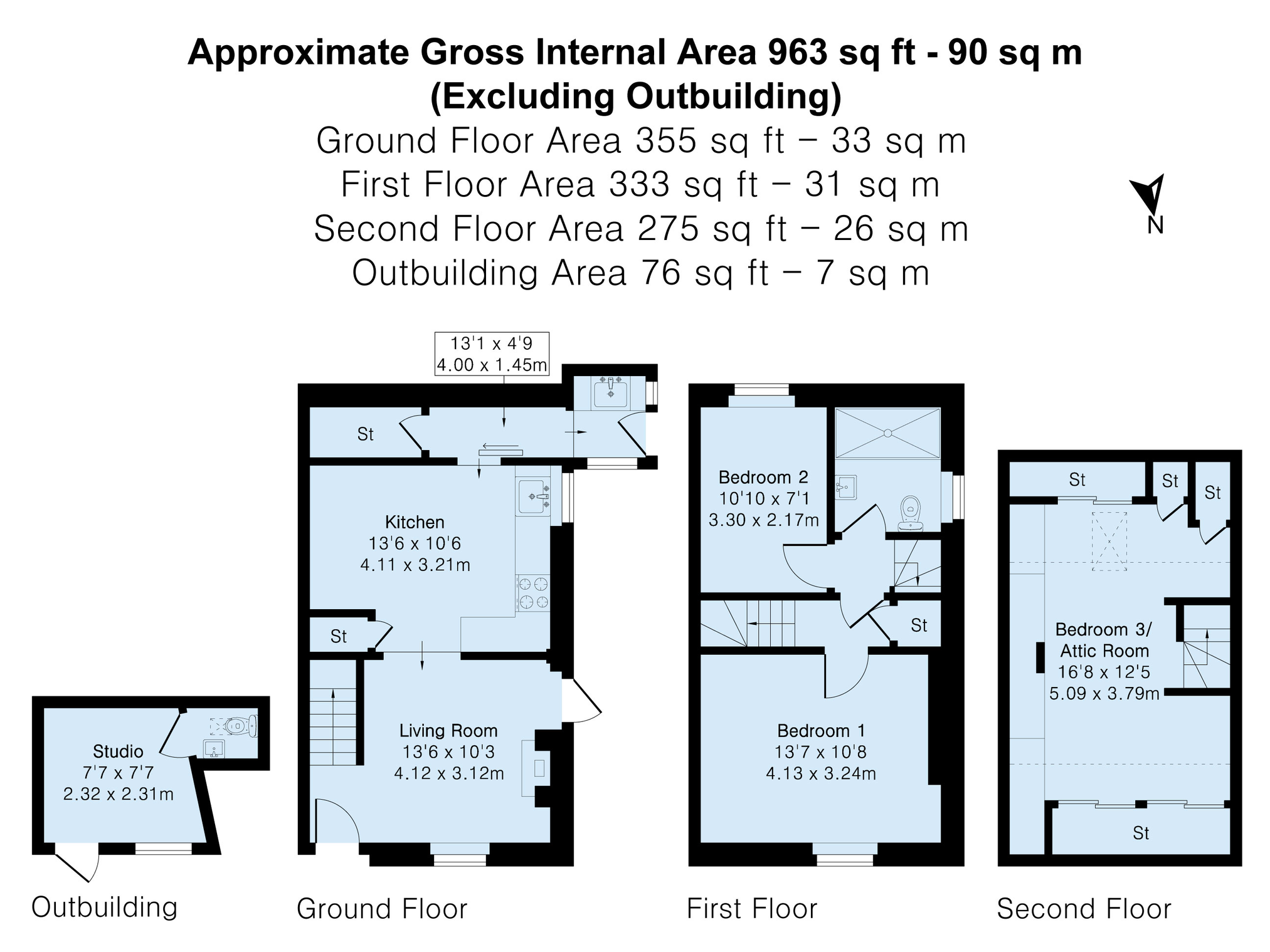 Outside there is off street parking for a small car and a courtyard garden leading to a studio room with a separate WC.