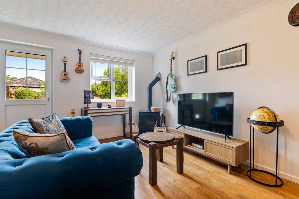 The ground floor accommodation comprises entrance hall through to a modern and well-presented kitchen. The sitting room has an understairs storage cupboard, room for a dining table, log burner and door to the rear garden. To the first floor is the family bathroom and two double bedrooms, the master having ample storage.