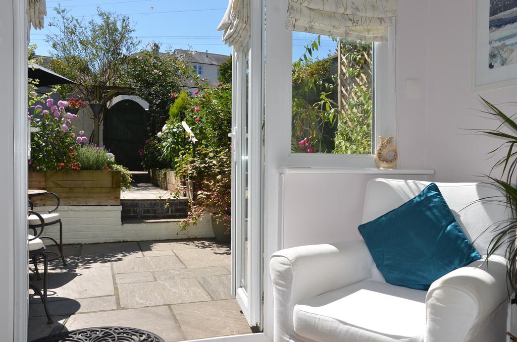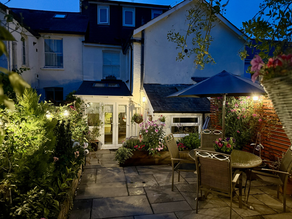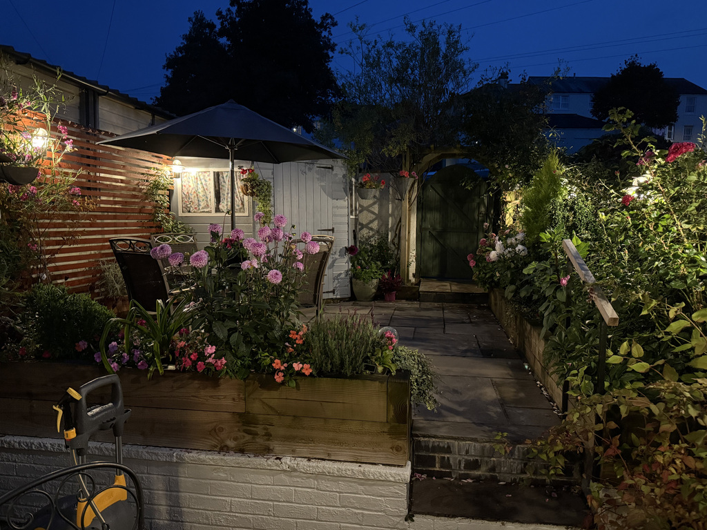 The patio garden is south facing with a range of raised flower and shrub borders. There is mains power decorative lighting and a garden shed with power and lighting. A rear gate leading to hard standing for two cars.