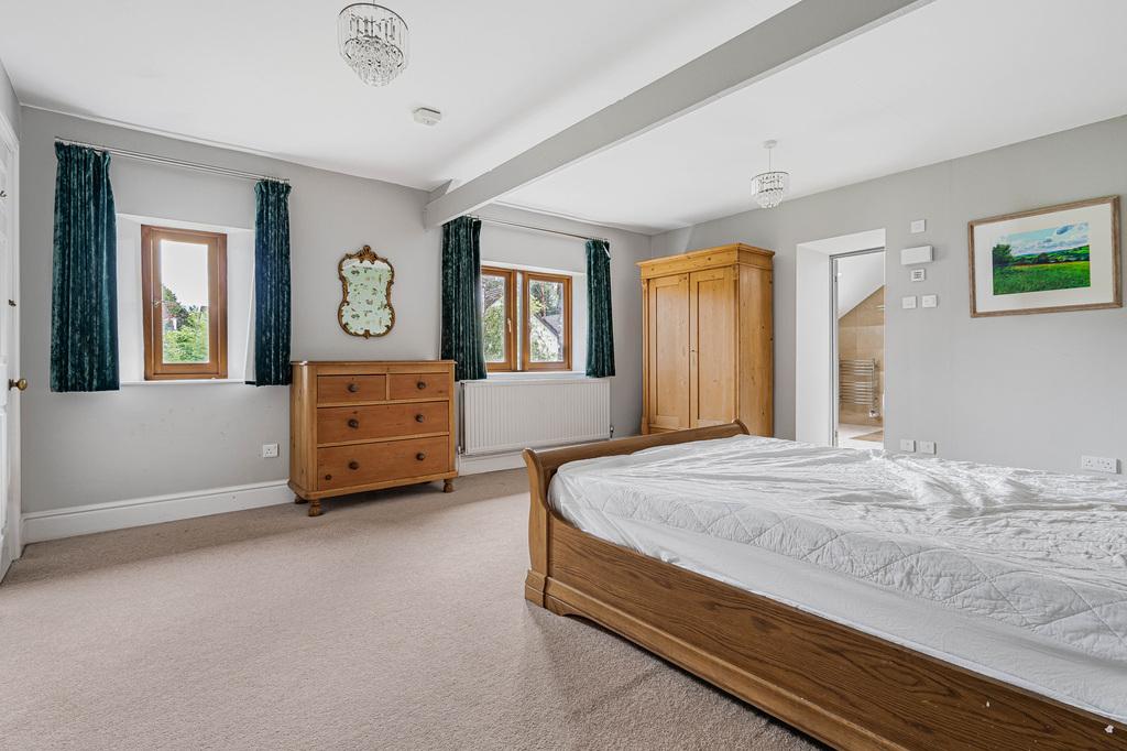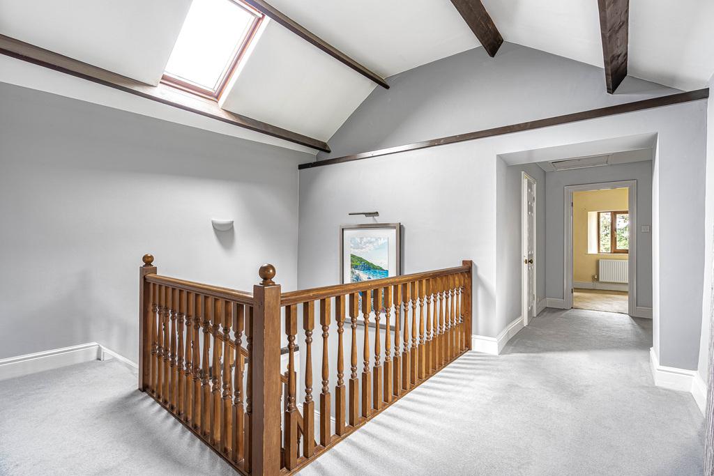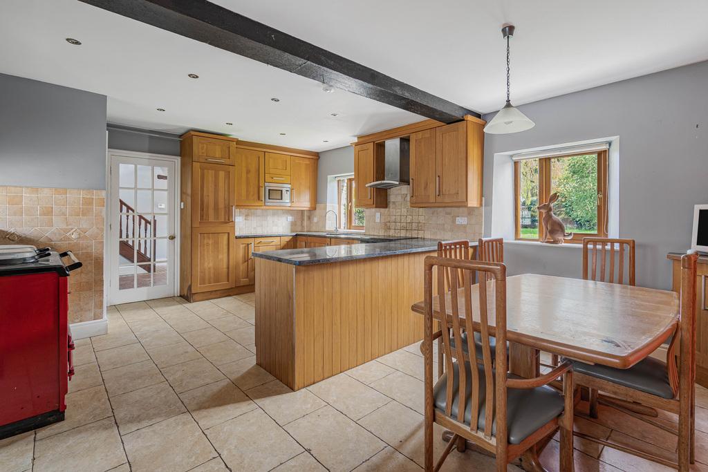 The house is entered via a generous entrance hall with an inner lobby and guest WC. The kitchen / breakfast room is fully fitted with a range of units and an oil fired Aga, with space for a kitchen table comfortably seating six. The utility room also serves as a boot room and interconnects with the kitchen and integrated garage with roller door and a further storage area. The snug is a bright double aspect room off the inner lobby which leads through into the living room, which is a lovely sized room overlooking the garden with patio doors and a wood burner. Double doors open into the conservatory/ dining room which is a great room for entertaining overlooking the garden. Upstairs a galleried landing leads to the principal suite with large principal bedroom and bathroom with stand alone bath and shower. There are four further bedrooms and a family bathroom.