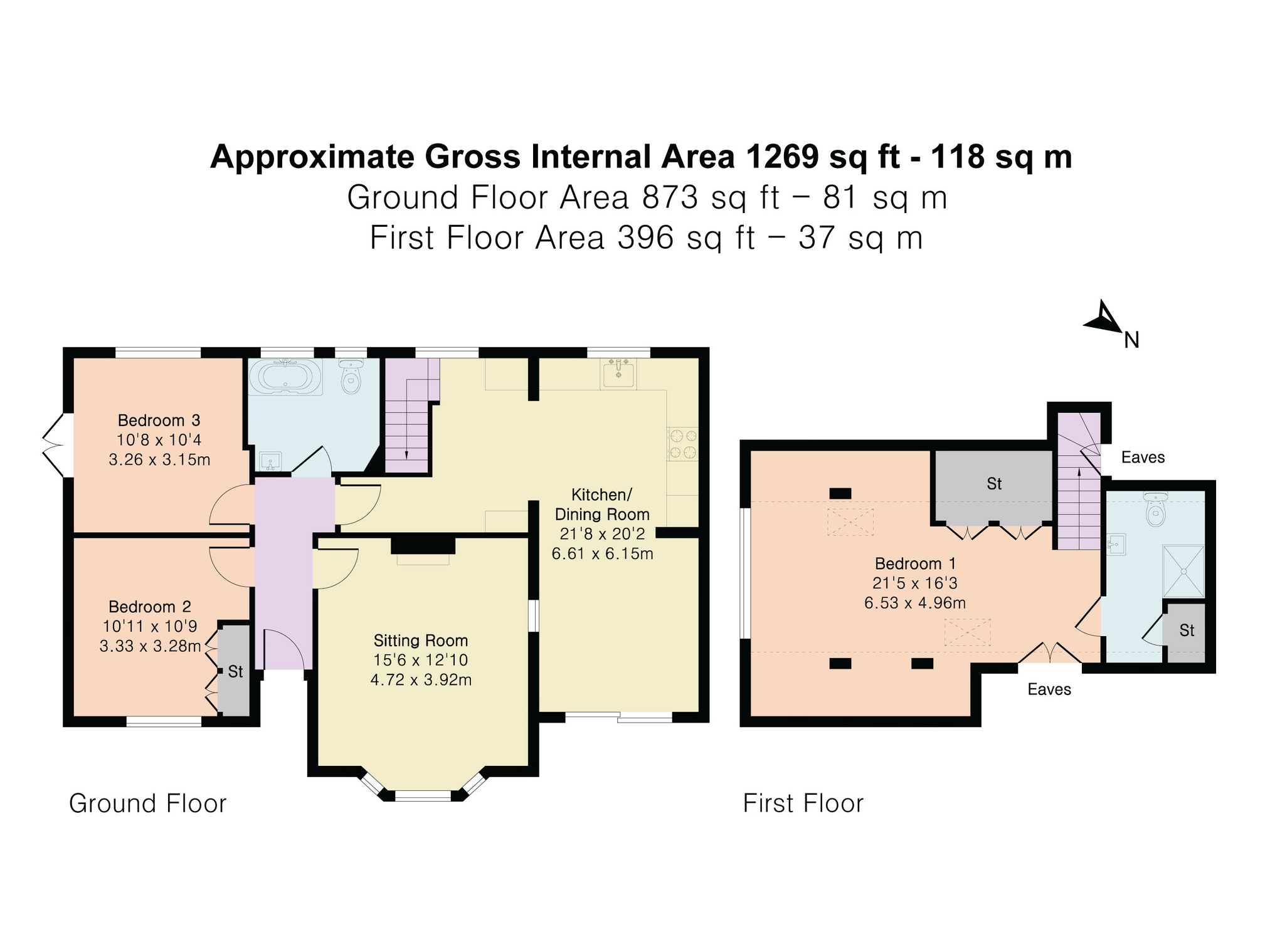 Outside the gardens are mainly laid to lawn with a range of shrub and flower boarders with fruit trees and a patio area. There is off street parking at road level.