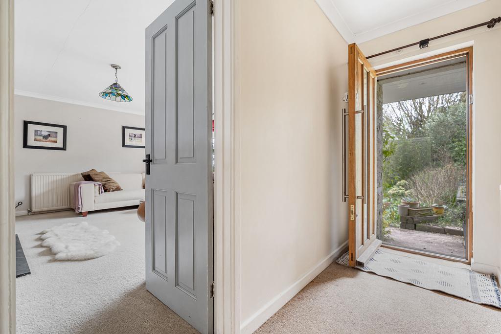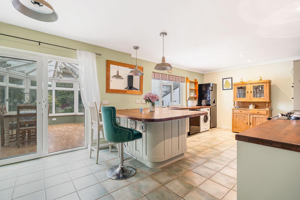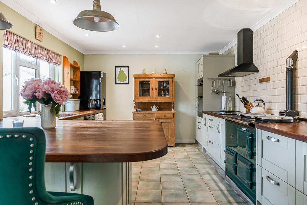 The entrance hall leads into the living room with a wood burner and a large picture window, to the rear of the property overlooking the garden and leading onto the conservatory which would make an ideal dining room and has ample space for a dining room table and chairs, is the Kitchen / breakfast room which is fully fitted including an oil fired Aga and a breakfast bar. There are three double bedrooms and a family bathroom.