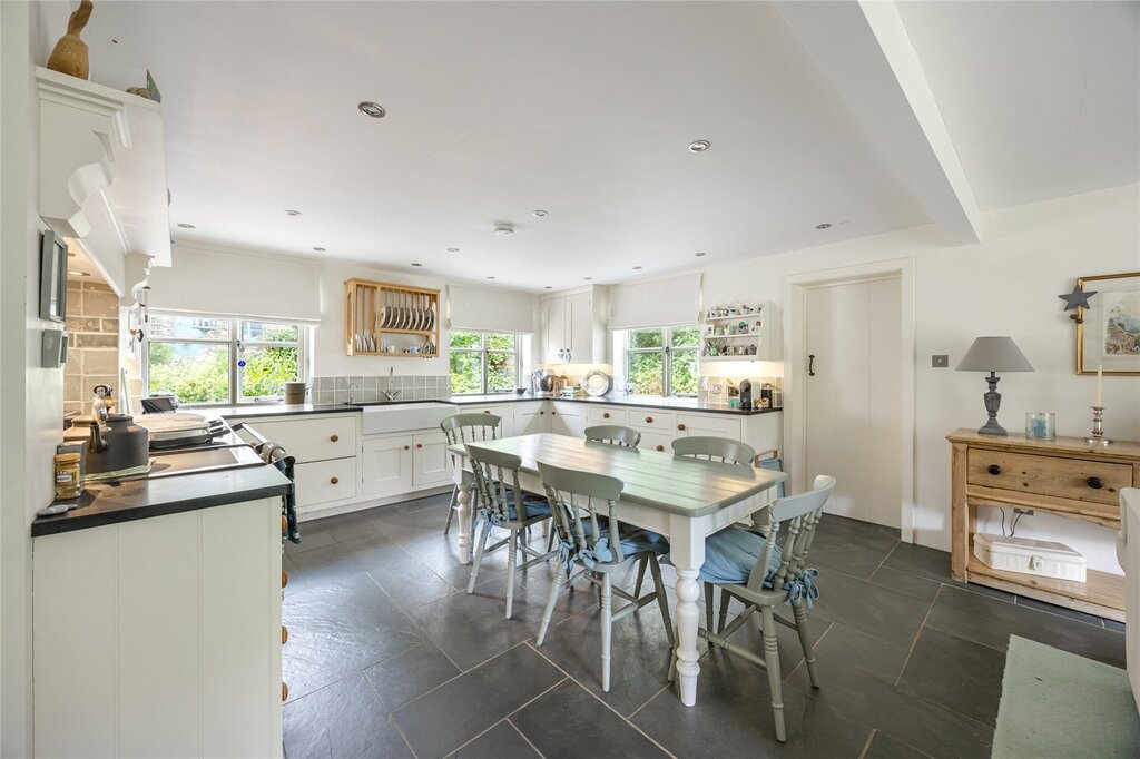 Upstairs benefits from a pretty light and airy landing leading to the principle bedroom with en-suite bathroom, 3 further double bedrooms and family bathroom. The home benefits from many characterful features including pretty windows with window seats, beams, exposed stone and flagstone flooring.
