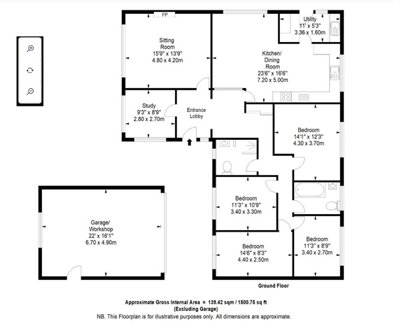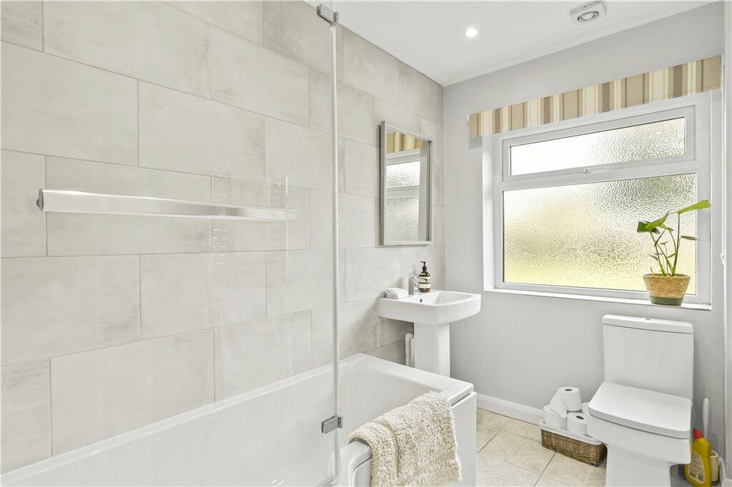 A bright and open entrance hall gives access to a dual aspect study, sitting room with wood-burning stove and large picture window overlooking the front garden. The kitchen/dining room is well-equipped with integrated appliances, and a traditional oil-fired AGA. There is a separate utility providing additional storage, plumbing for washing machine and dryer and access out to the garden. Off the entrance hall are are four double bedrooms, a family bathroom and separate shower room .