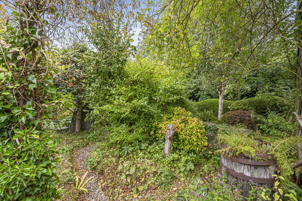 Outside of the property the garden wraps around the rear and the side of the property and consists of a lawned sitting area, a pond and areas stocked with a variety of plants, trees, shrubs and old gravestones. There is off road parking for two vehicles.