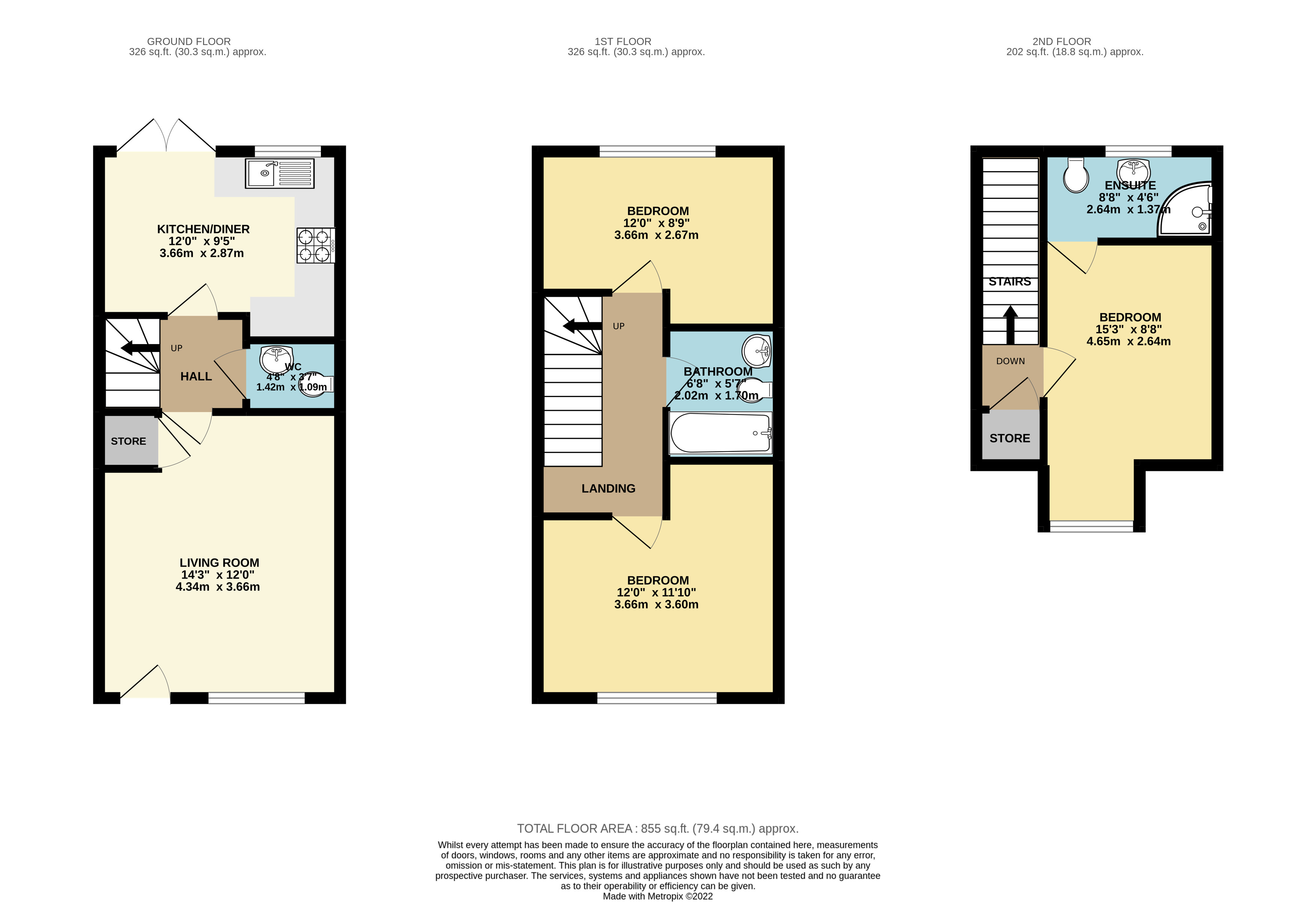 Brief internal accommodation comprises a spacious living room, modern kitchen/diner with integrated appliances and a guest cloakroom. The first floor provides two double bedrooms and the family bathroom. The second floor offers the master bedroom complete with its own en-suite. Externally the property boasts a larger than average rear garden and driveway for two/three vehicles.