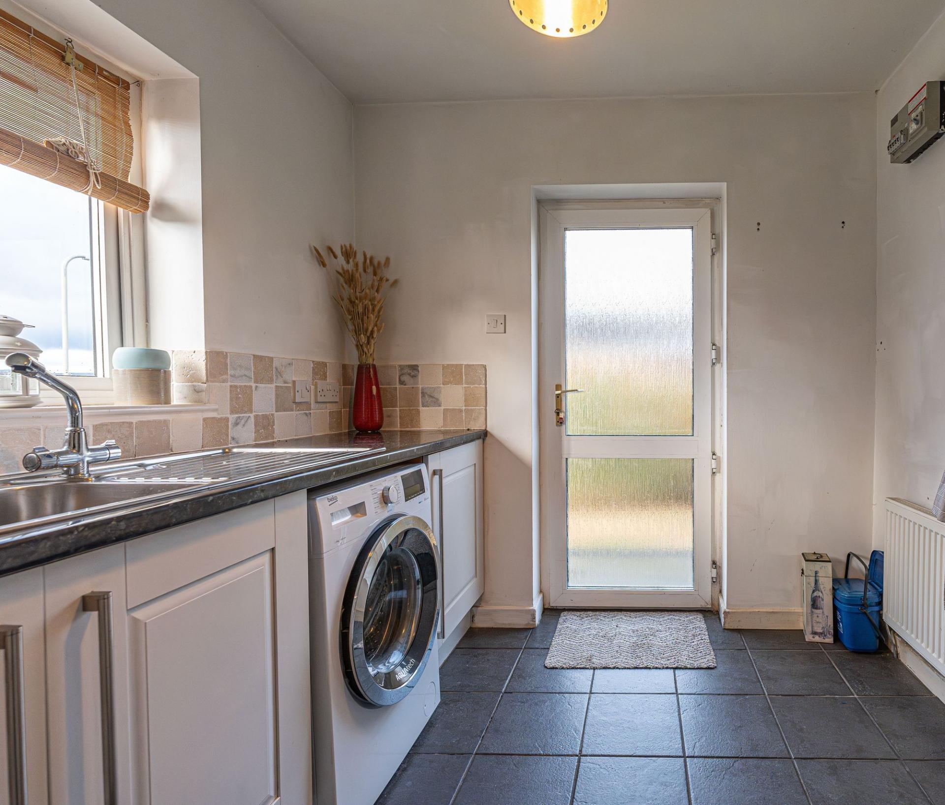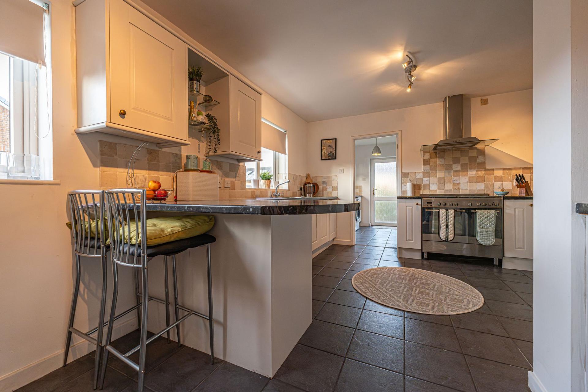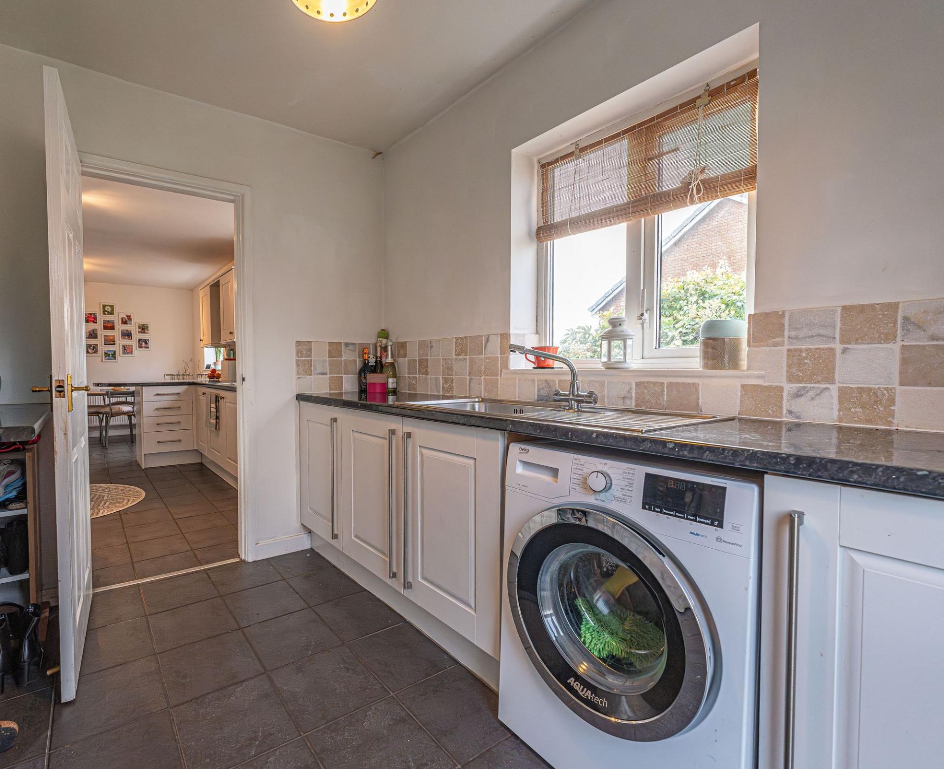 This beautifully presented family home offers an impressive blend of modern style and practical family living, with plenty of versatile living space available. Upon entry to the front of the house we are welcomed in to the spacious living room, which features an open plan walkway to the rear facing dining area, with both rooms enjoying abundant natural light, and a cosy fireplace - creating a warm and relaxing heart to the home. The spacious, contemporary kitchen is designed for both functionality and entertaining, with sleek modern units and tiled flooring, with both a convenient breakfast bar and a proportion that can suit another dining area or snug lounge space. The kitchen is well equipped with room for appliances and storage fixtures, which is reinforced by the neighbouring utility room, which also features another doorway to the garden, and interior access to the fabulous garage, which is optimal or sheltered parking and storage facilities. The ground floor also showcases the first bedroom of the property, which is a generously sized double room.