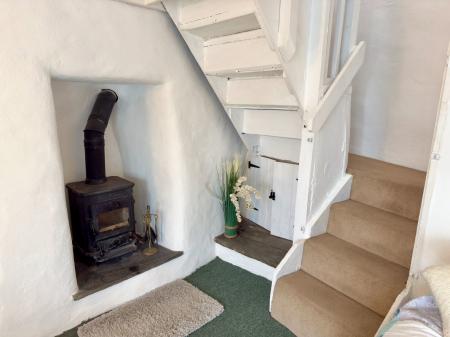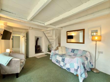 Spacious lounge/diner. This area consists of character beams, multifuel burner, t.v. point and UPVC double glazed window to front with window seat. Small understairs storage and access through to