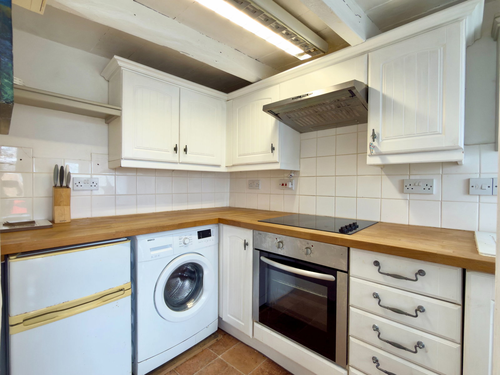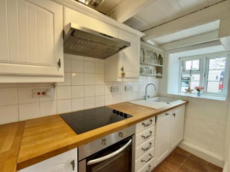 UPVC double glazed window to front. Range of wall and base units with worktop. Electric oven and hob with extractor over. Tiled splashback. Stainless steel sink. Space and plumbing for washing machine. Space and power for under counter fridge/freezer.