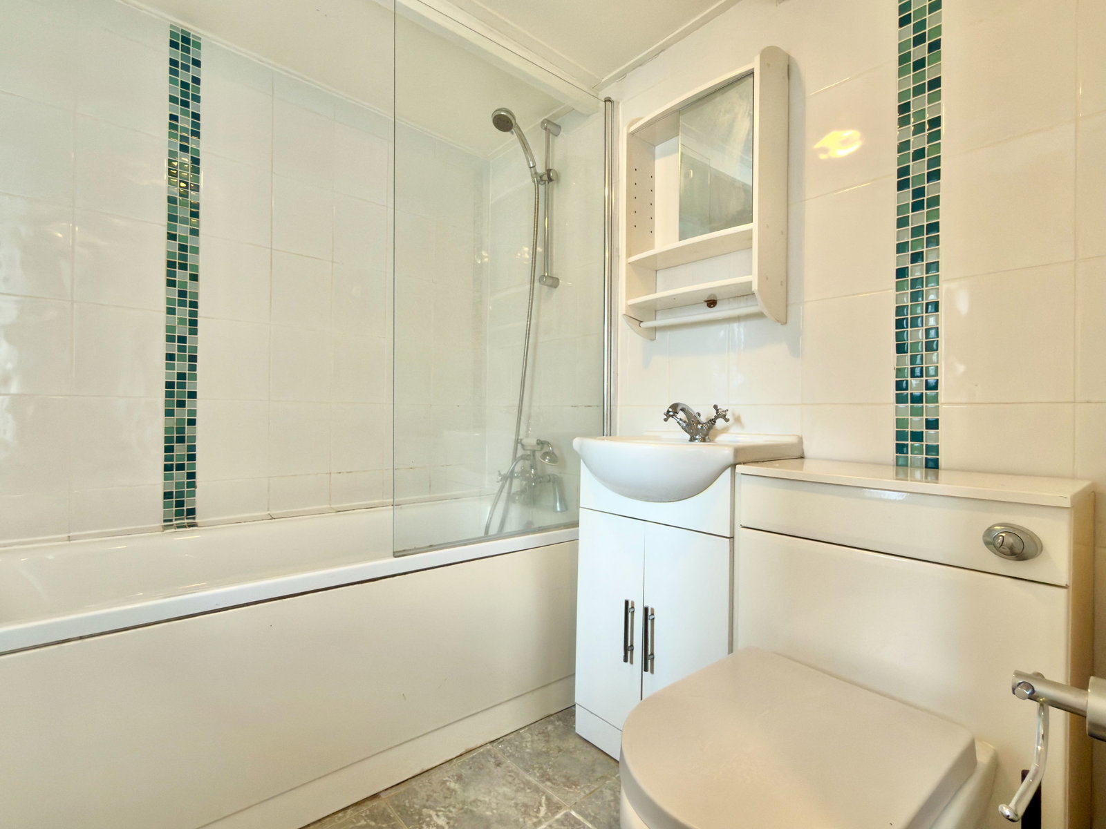 UPVC double glazed window to front. Exposed beams. White bathroom suite with low level w.c. Wash hand basin with vanity unit. Radiator.