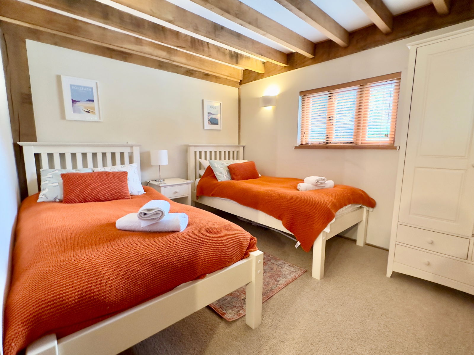 Double bedroom. 2 x timber double glazed windows to side. Electric heater. Wardrobe space. Character beams.