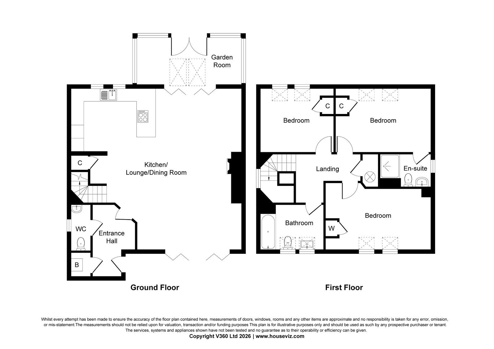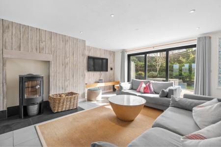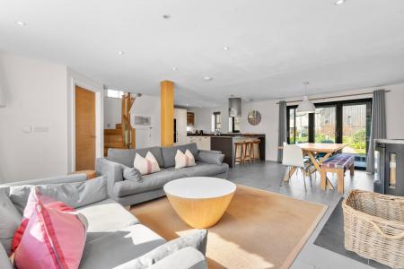 Offering a magnificent 7.5m open plan living/dining/kitchen which incorporates a highly equipped modern kitchen, the living space also features a woodburning stove together with bi-fold doors opening to a garden room. At first floor there are three double bedrooms with en-suite to the main and family bathroom.