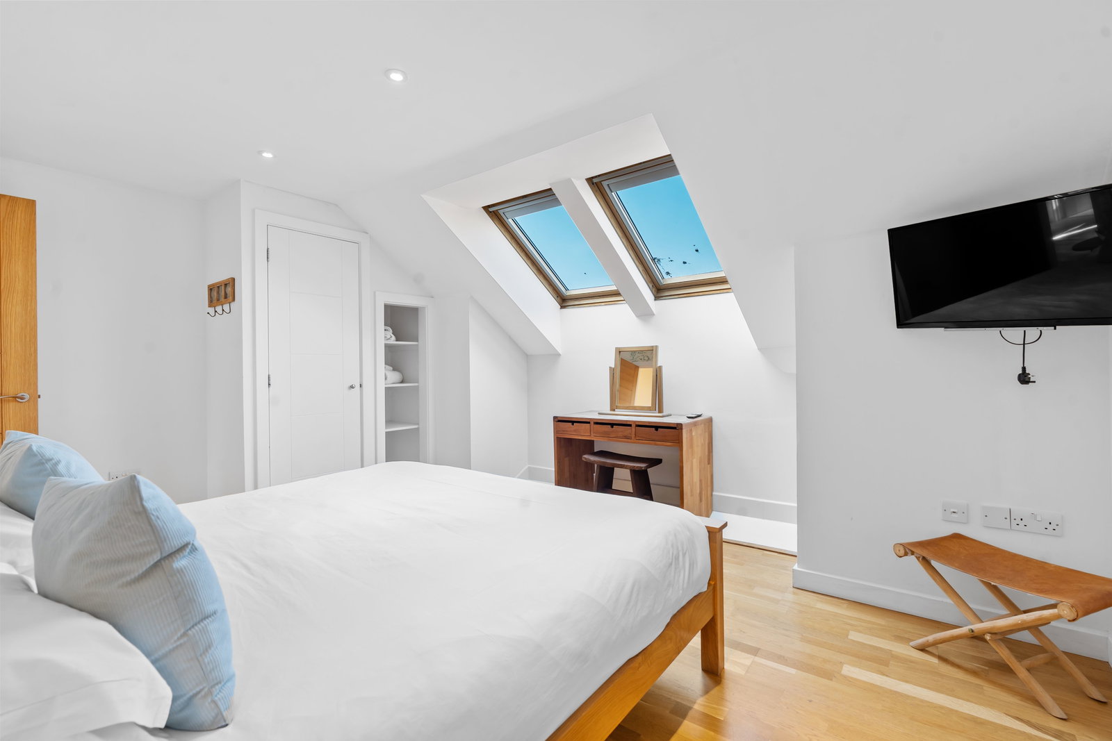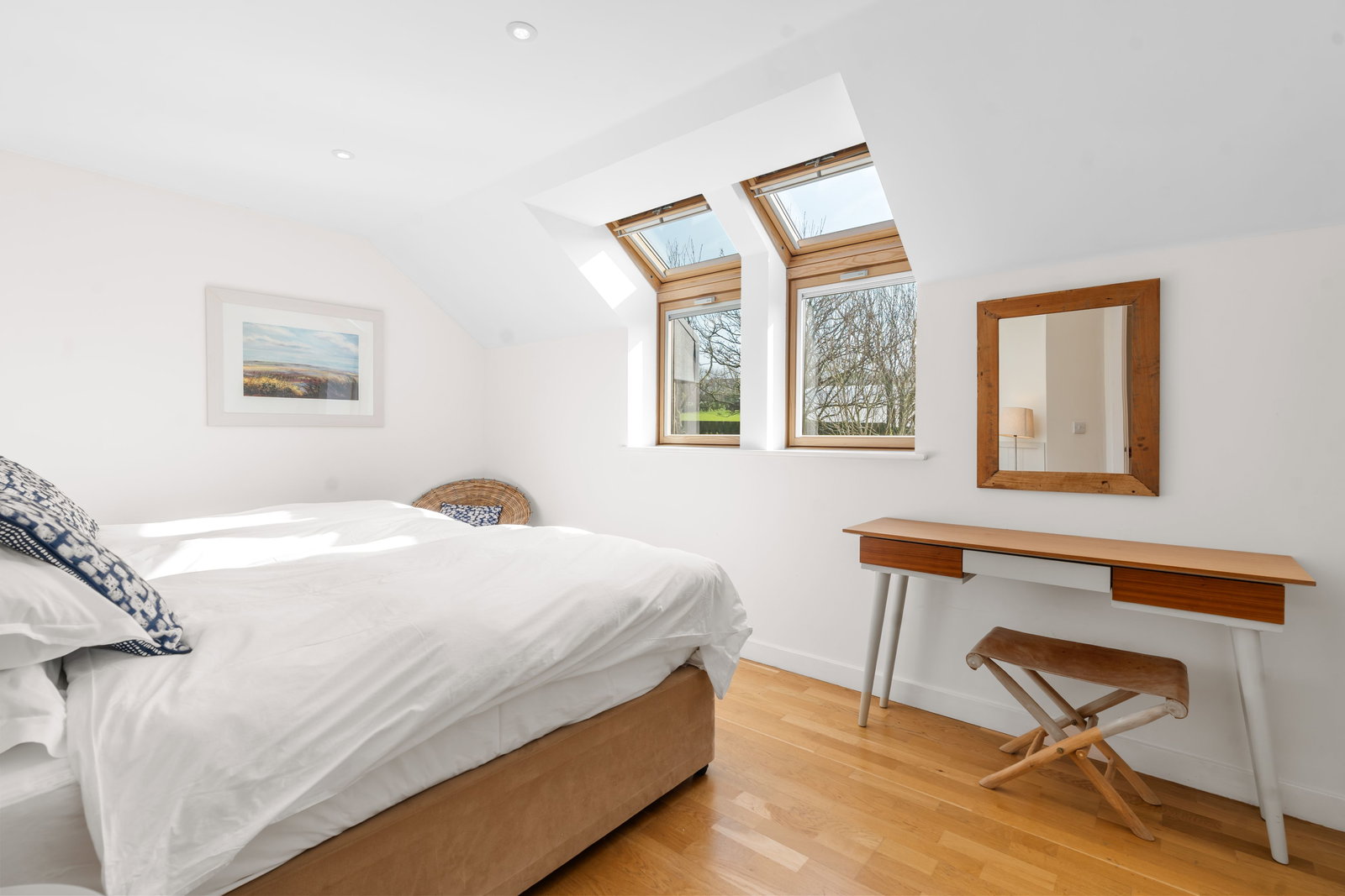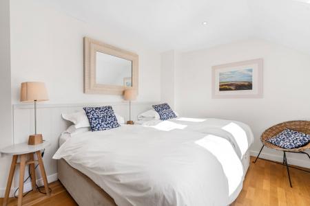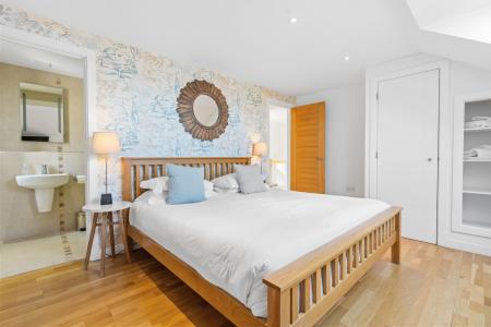 Two Velux windows to front, built in wardrobe and shelving, oak laminate floor, underfloor heating thermostat.