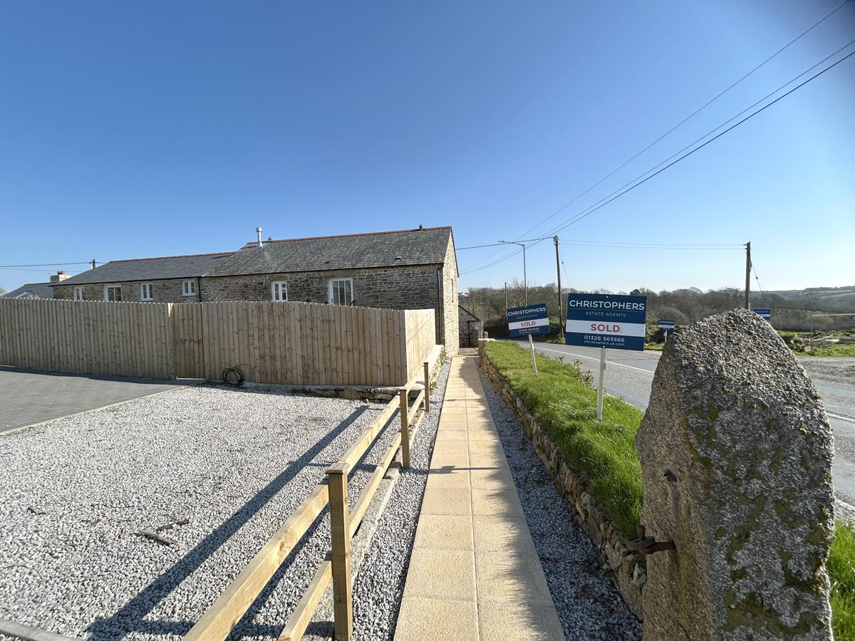 An exceptionally well restored and thoughtfully designed, reverse level three bedroom barn conversion situated in the hamlet of Trewennack. Offering an appealing blend of heritage that stays true to its' Grade II listed status whilst offering contemporary comfort and luxury, Chy Growan has been thoughtfully conceived with the reverse level living designed to take advantage of its naturally light and sunny aspect. Situated within an attractive cobbled enclave of restored barns, this semi-detached home showcases vaulted ceilings, exposed character beams, and stylish part oak doors, whilst a bespoke feature window enables light to flood in and provides an outlook towards Boskenwyn in the distance.