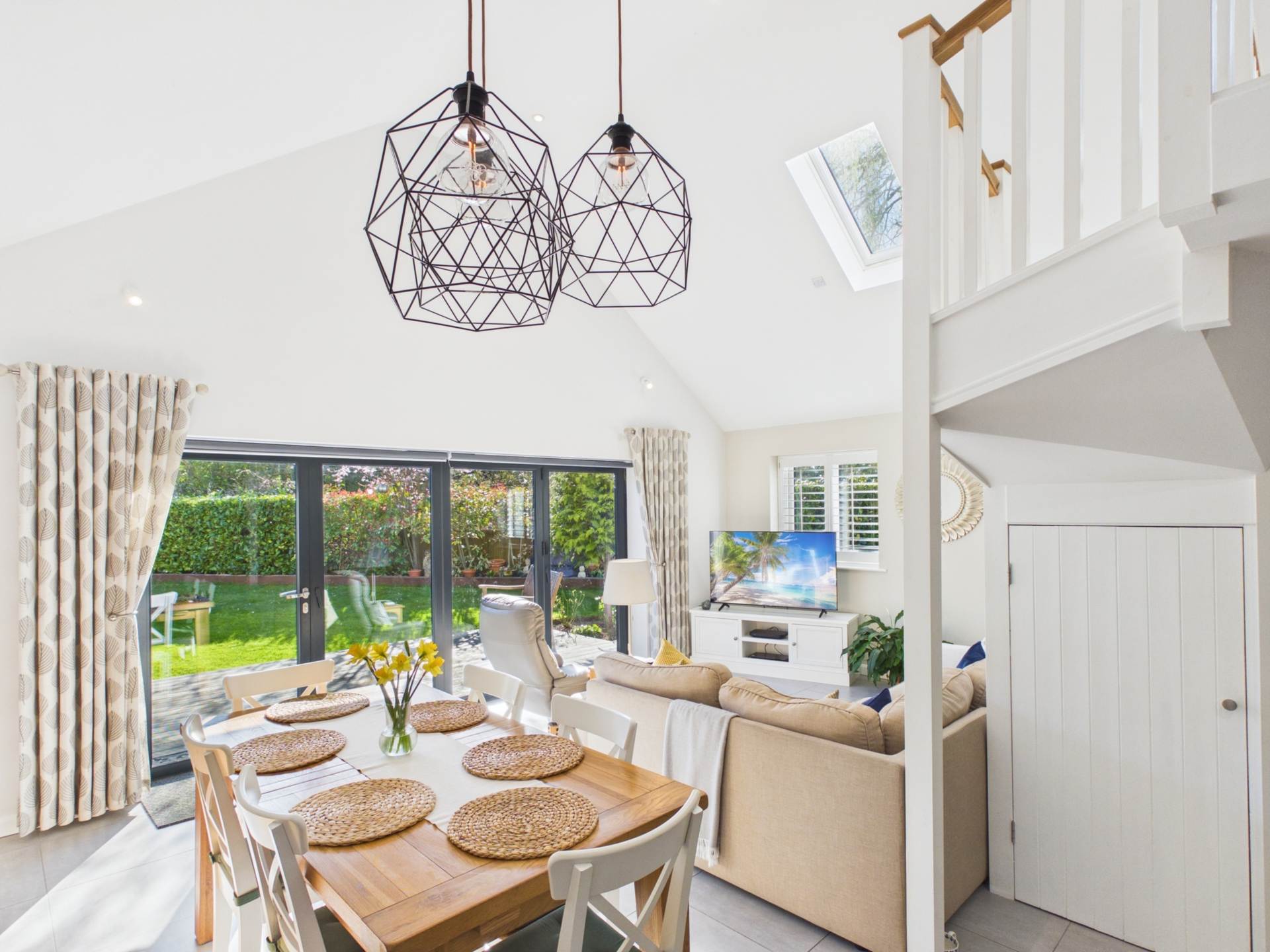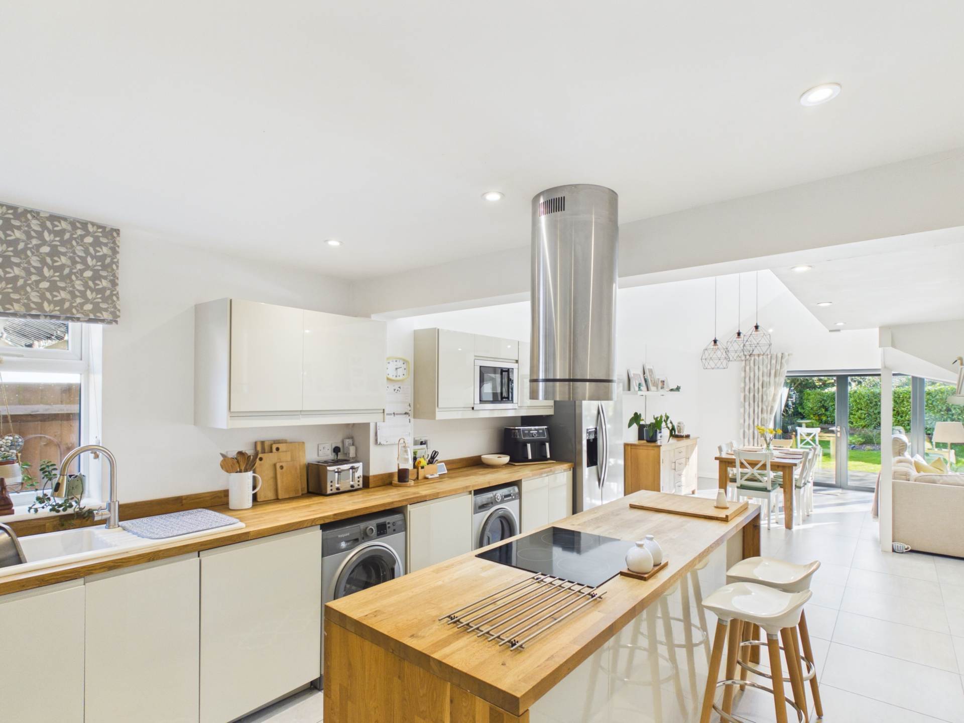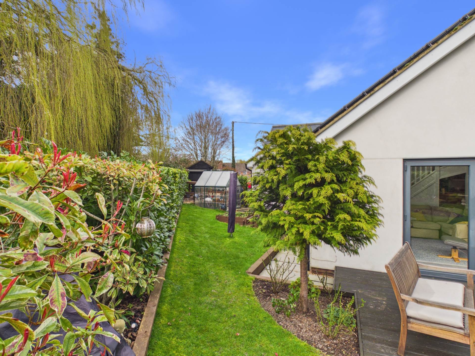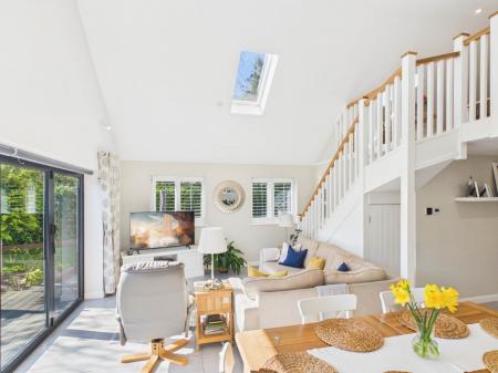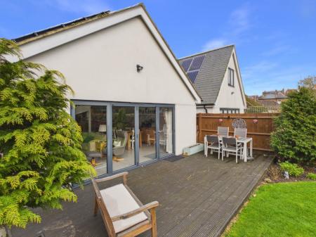 There are four well appointed bedrooms, each finished to a high standard and filled with natural light. There are two ultra modern bathrooms: one featuring a stylish walk-in shower, and the other serving as the main family bathroom. At the heart of the home is the stunning gourmet kitchen a true chef`s dream, complete with generous work surfaces and bespoke cabinetry, thoughtfully designed and beautifully appointed. The open plan dining area flows seamlessly into the spacious living room, creating an ideal space for modern family living and entertaining. A mezzanine level, set apart from the main living space, provides a versatile area perfect for a home office, studio, or hobbies. Bi-fold doors open onto a decked patio, ideal for relaxing or hosting family and friends.The private, tranquil garden is well stocked with herbaceous borders, mature trees, and raised beds perfect for use as a kitchen garden. A double versatile storage shed adds further practicality.There is ample private driveway parking and is conveniently located within walking distance of Tring town center. This exceptional home combines contemporary comfort with stylish living in a desirable location.
