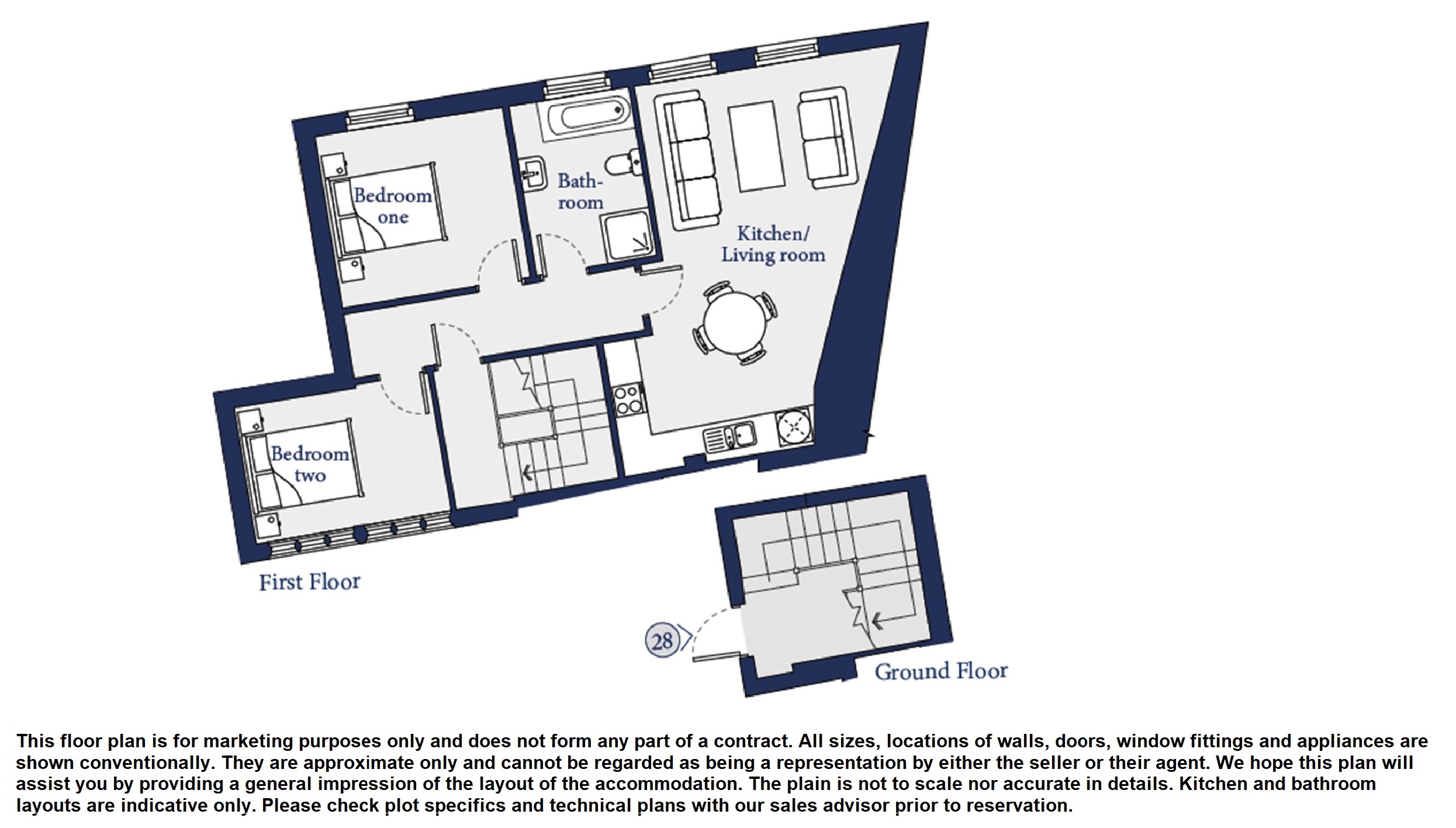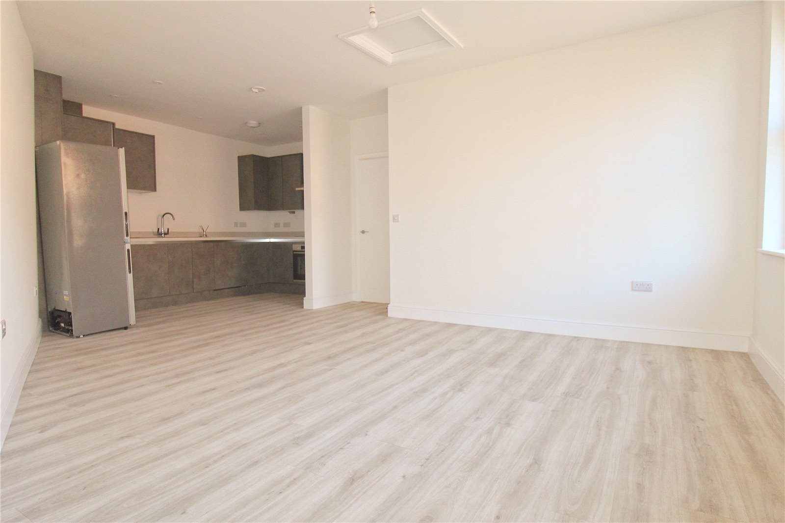 Stepping in through the private entrance, stairs lead to the first floor with a great deal of under stairs space that could provide useful storage. Heading upstairs, the landing has doors to each of the rooms with a spacious open plan living area serving as a great entertaining space. The stylish kitchen has an integrated Bosch dishwasher, oven and hob as well as an integrated Hoover washing machine. There is a good amount of work surface space whilst the lounge area offers plenty of space for sofas and chairs. Both bedrooms are great sizes whilst the bathroom features a bath, WC, wash basin and double shower cubicle.