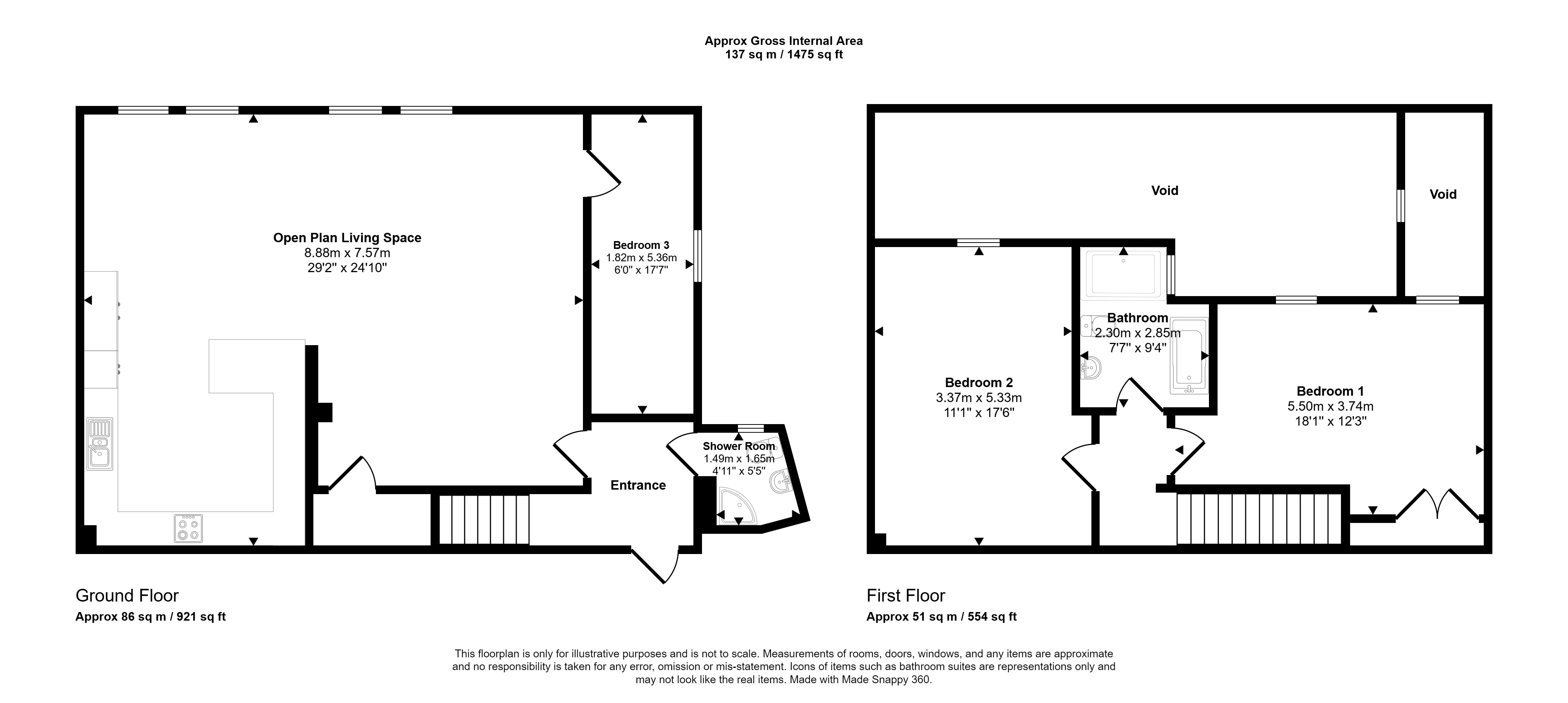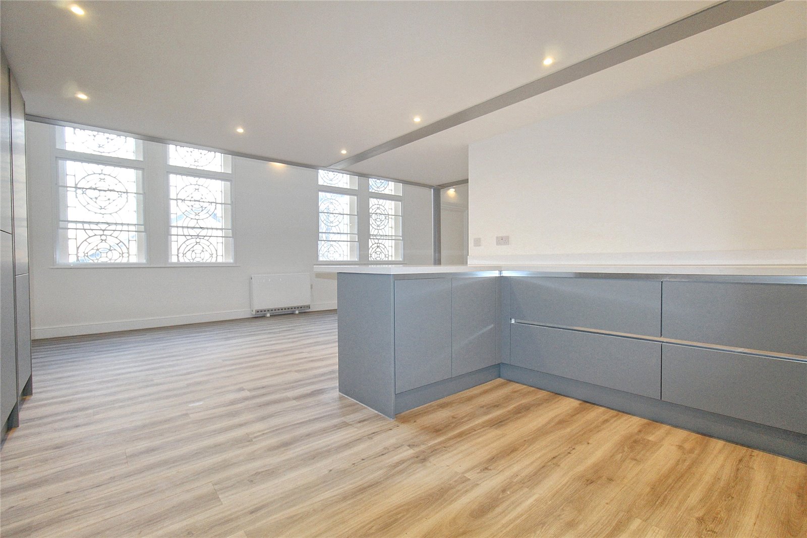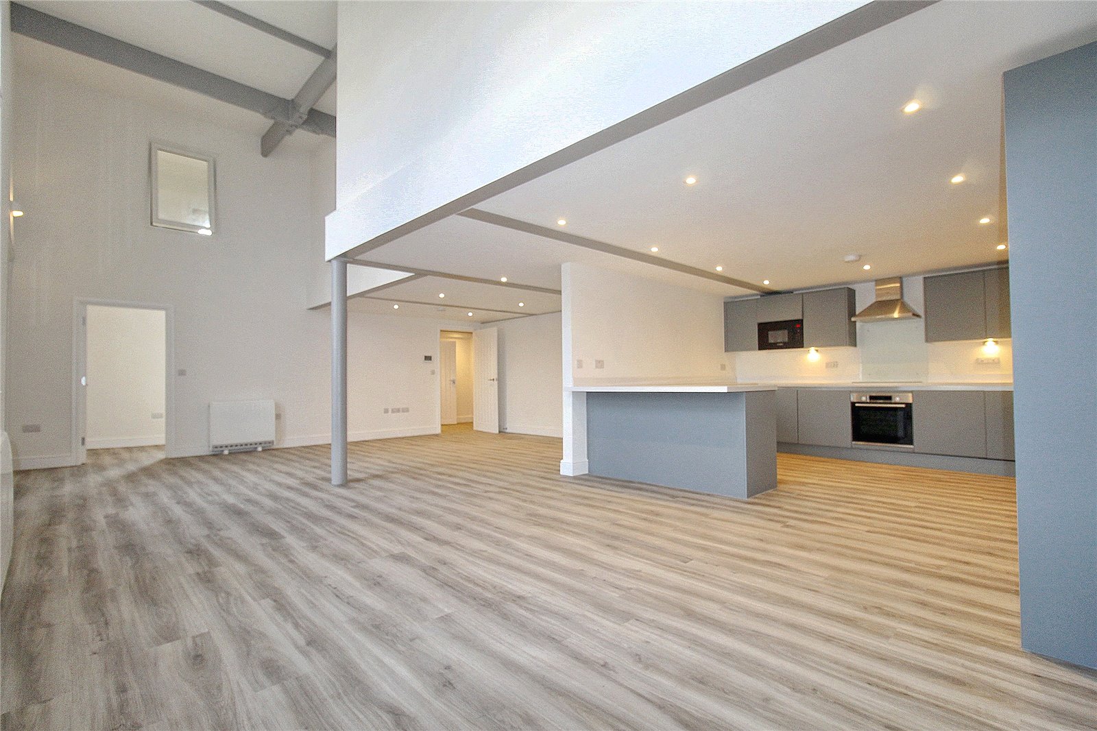 This particular property is found adjacent to the stunning communal hall providing convenient access. Stepping into the property you find a hallway with stairs to the upper floor whilst the lower floor features a shower room, bedroom three and a remarkable open plan living space. The striking features of the living accommodation include vast original windows which flood the space with light whilst the vaulted ceiling further enhances the feeling of space. The sublime kitchen area features a huge amount of fitted units and work surface, ideal for hosting in such a wonderful social atmosphere. Moving upstairs, you find two generous double bedrooms, one with built in wardrobes, whilst the bathroom with four piece suite completes the accommodation.