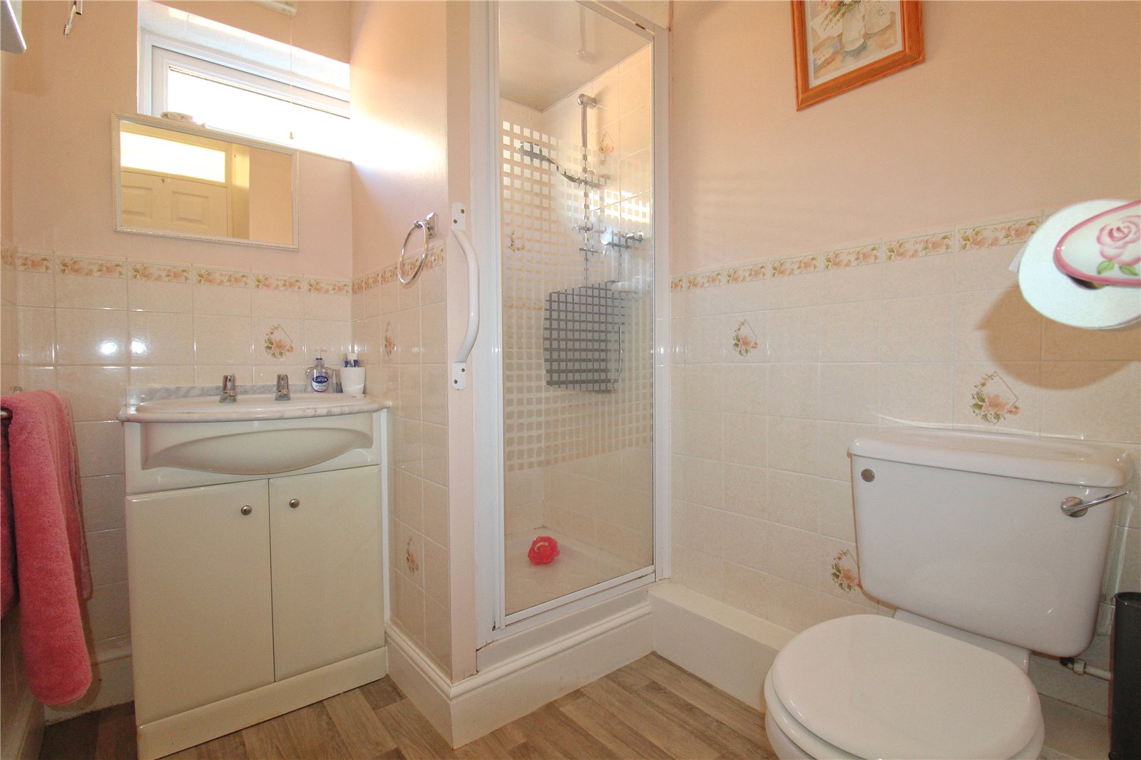 Stepping into the property you find an entrance hall with doors to both bedrooms, the shower room and living room along with a large storage cupboard. The living room is a generous size with a window and French doors overlooking the lovely rear garden whilst a door leads on to the kitchen. Fitted with a selection of units and a good amount of work top space, the kitchen has space for a small table and a door to the side. Bedroom one is a good double bedroom with space for wardrobes and a window overlooking the garden whilst the second bedroom is another good sized room. The shower room meanwhile has a shower cubicle, WC and vanity unit.