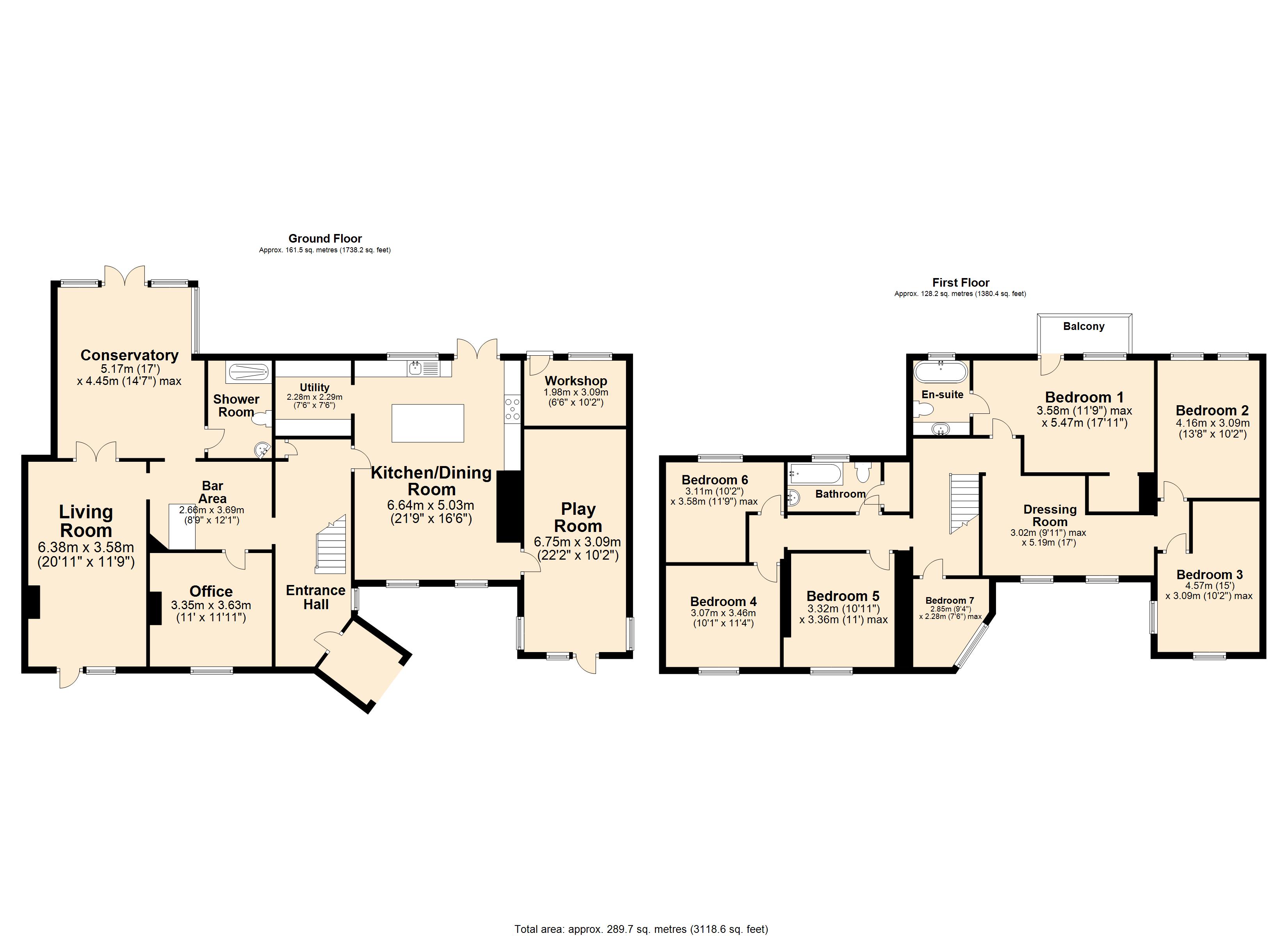 Heading upstairs you find seven bedrooms, six of which are comfortable double rooms and each enjoys a lovely view of the surrounding countryside. The main bedroom is served by an ensuite and has a balcony to the rear, perfect for enjoying the sunrise. Two of the bedrooms are accessed via the dressing room, a handy space that could suit other uses if required.