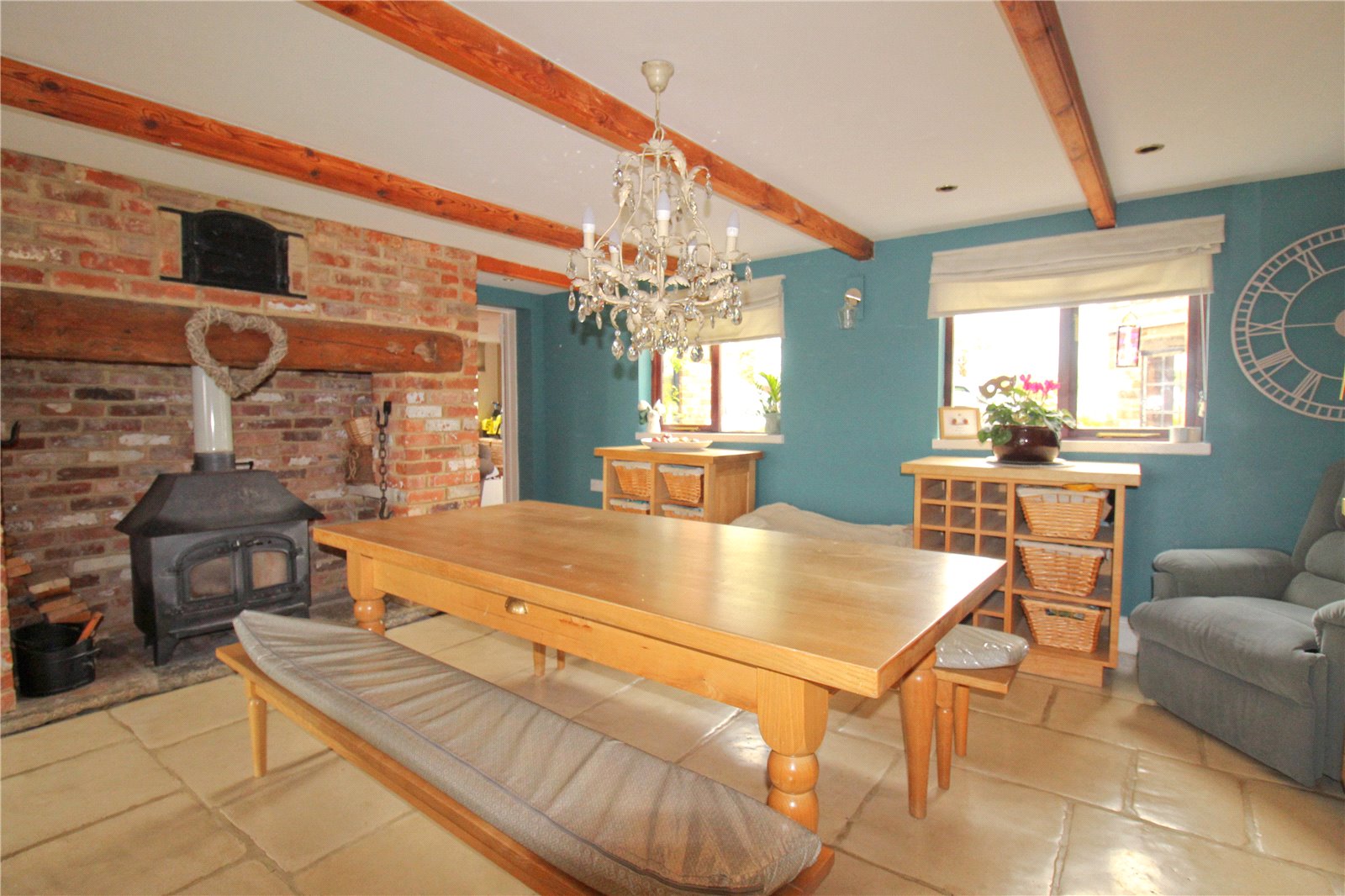 Arriving at the property you find a large front garden with a block paved parking area with space for a fleet of vehicles. This west facing space is the perfect area for enjoying summer evenings, taking in the peace of such an idyllic spot. Stepping inside, the hallway provides access to a gorgeous kitchen diner with dual aspect windows and a plethora of beams. This leads to the utility room and a fantastic reception room, currently used as a playroom. There is also a formal living room, study, bar area and a conservatory overlooking the rear garden as well as a downstairs shower room. The downstairs shower room is an unfinished project for a new owner to make their mark on.