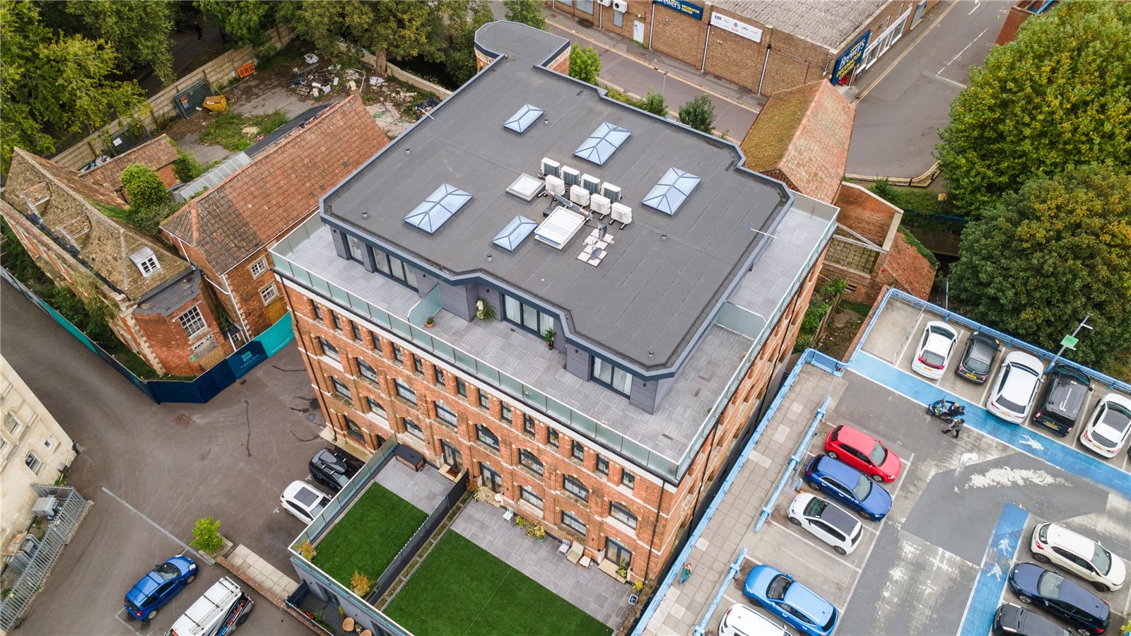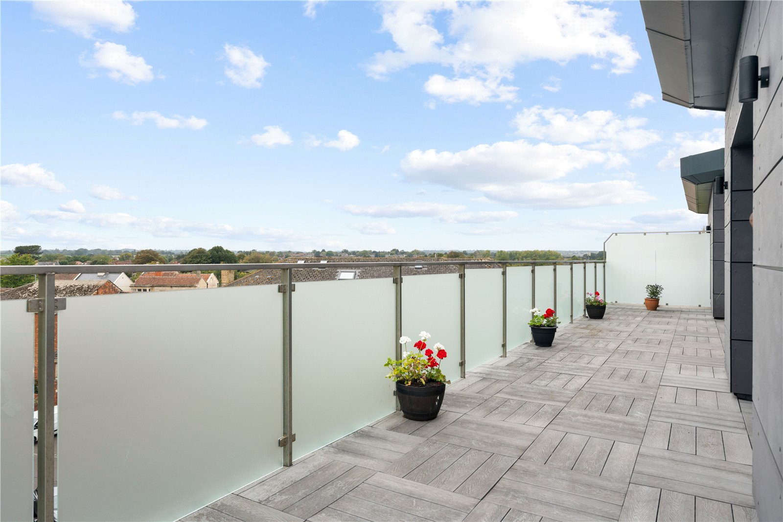 Moving upstairs, the vast open plan living space features a quality fitted kitchen with a lantern roof window as well as plenty of room for the usual lounge and dining furniture. Two sets of patio doors lead onto the impressive balcony whilst a separate cloakroom provides a further WC and wash basin. The tremendous balcony space is truly something to behold. The panoramic roof top views include The Town Hall, County Hall, various churches and fields beyond the town including Westbury White Horse.