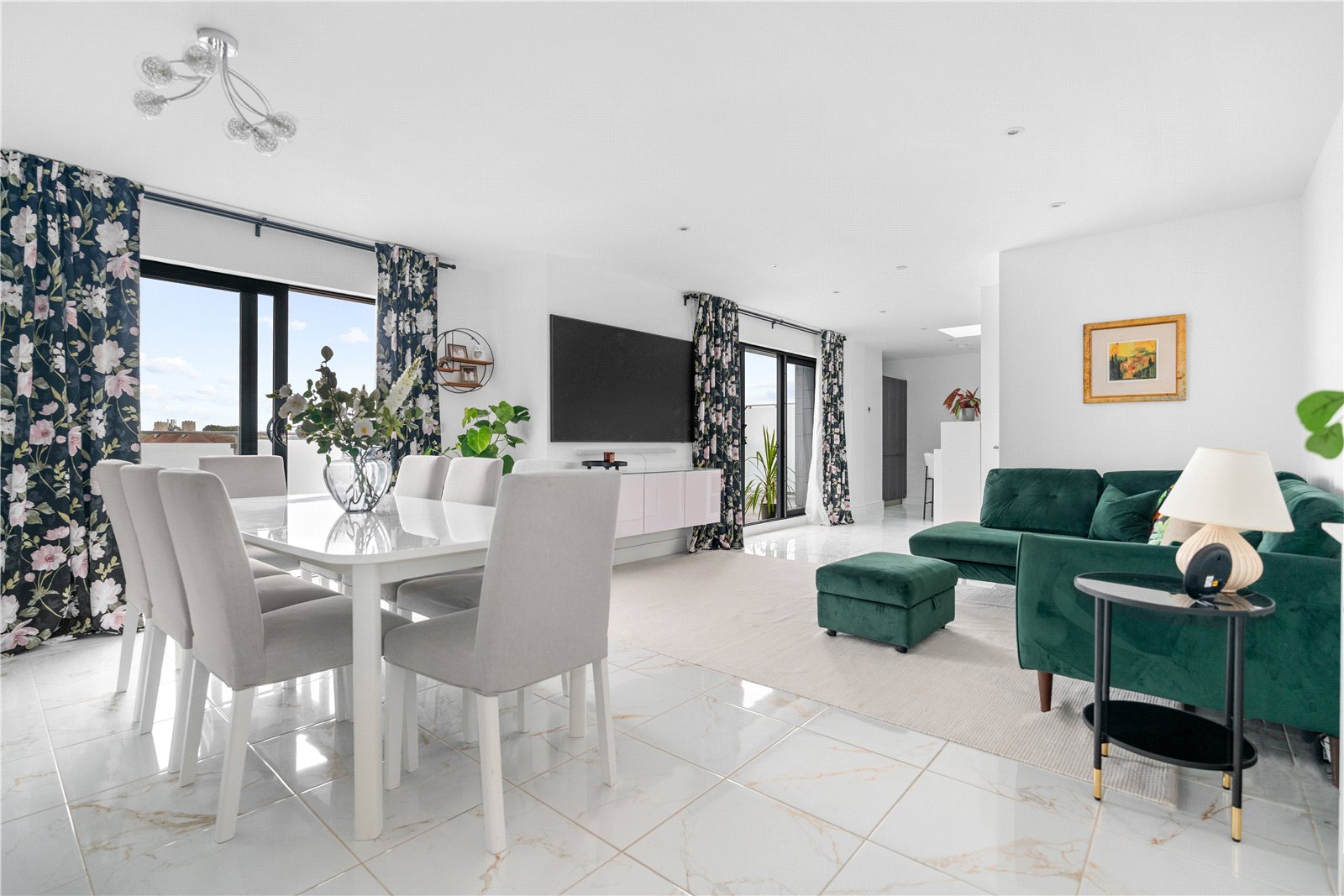 With panoramic roof top views from the large balcony space, this staggering penthouse apartment offers wonderful proportions and various luxury touches. There are three double bedrooms with a master en-suite as well as stunning open plan living space. Air source heat pump, underfloor heating and lift access further enhance this wonderful home.