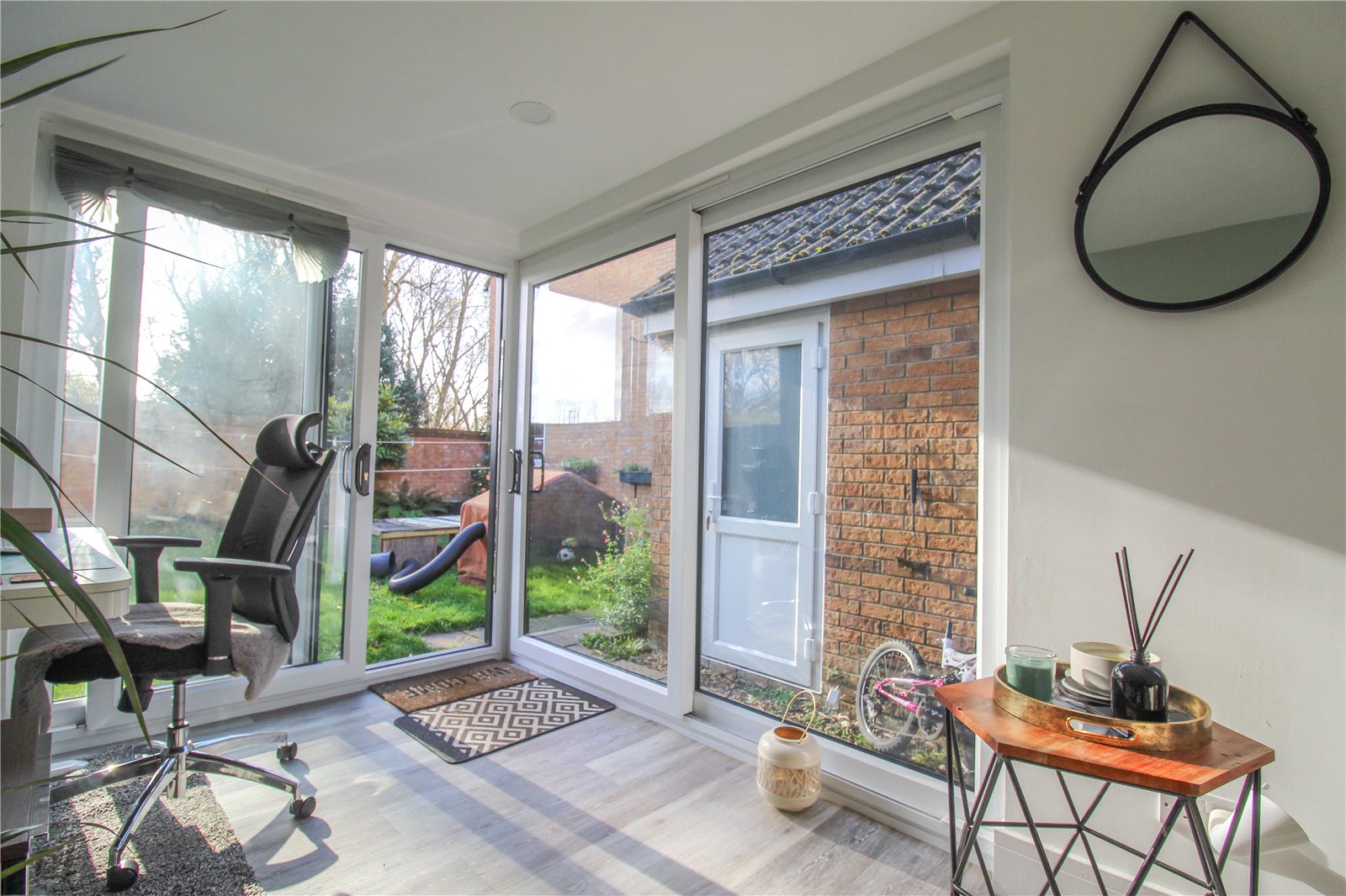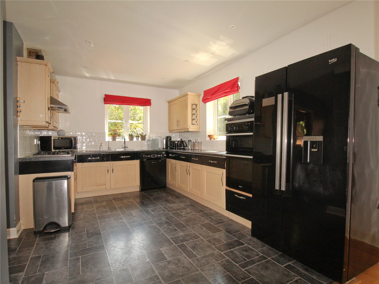As you enter, there is a large entrance hallway with handy cupboard perfect for tucking shoes and coats away. Leading off, there is a large double aspect living room with doors leading out the garden. Also off of the hallway, there is a downstairs study room, which could be also be used for a playroom. Further through, there is a downstairs W/C and then you enter a large kitchen/dining area with plenty of kitchen cupboards, and windows creating a lovely entertaining space.